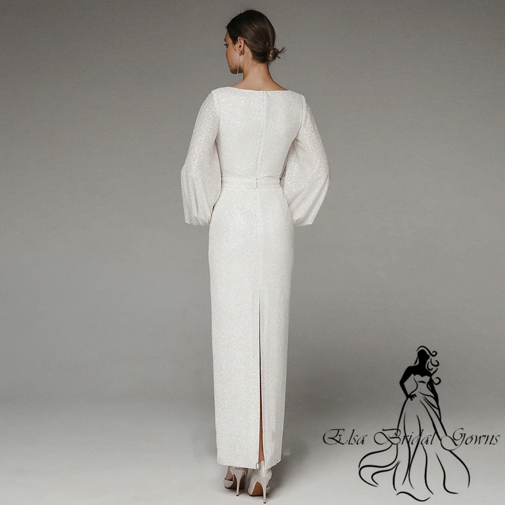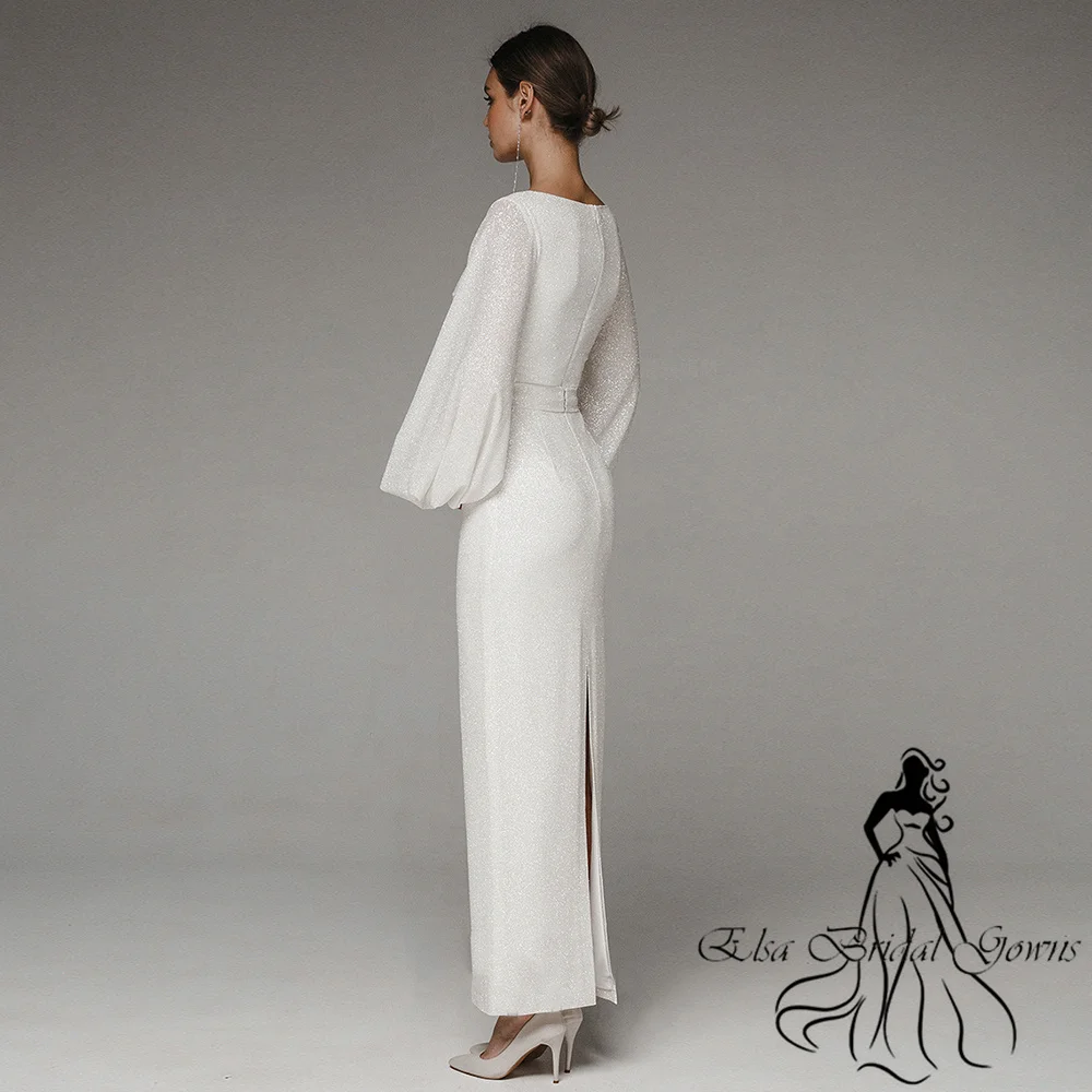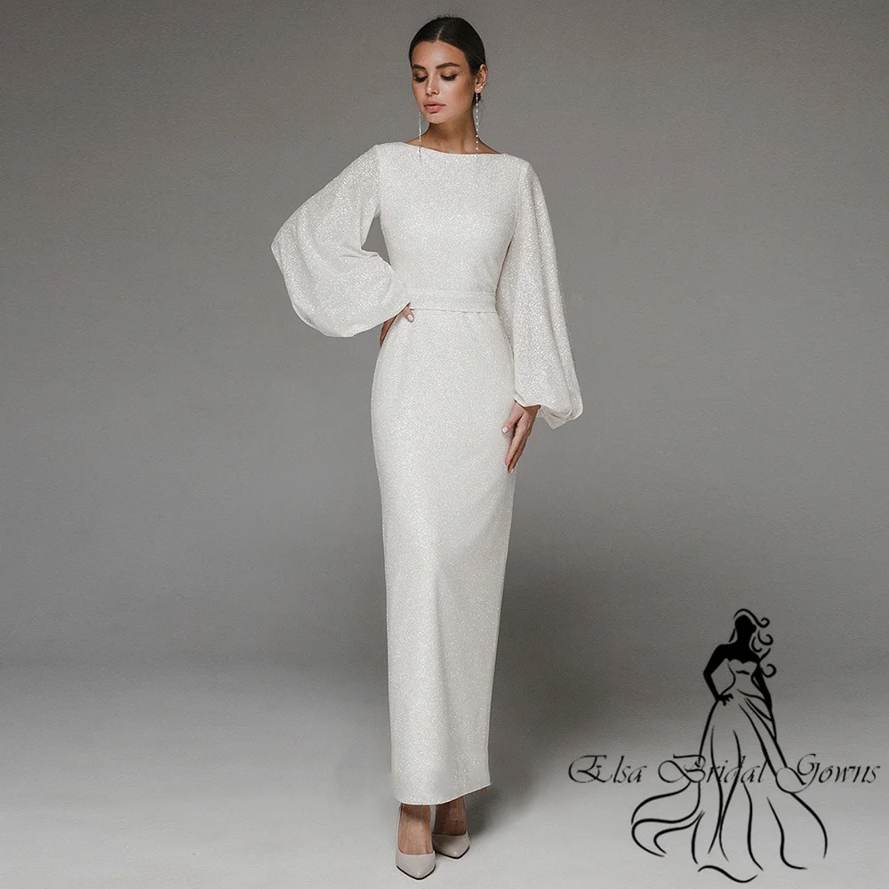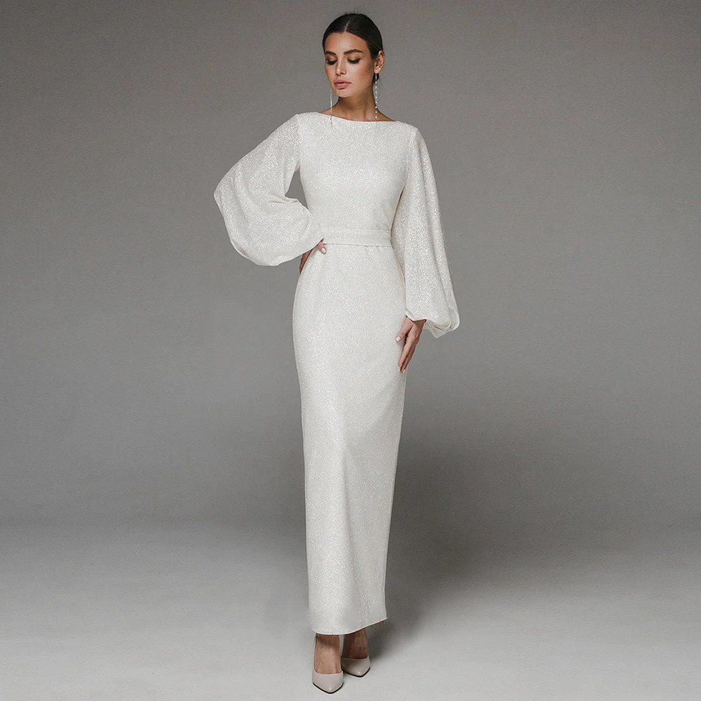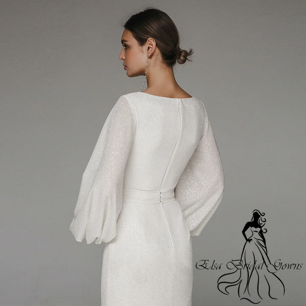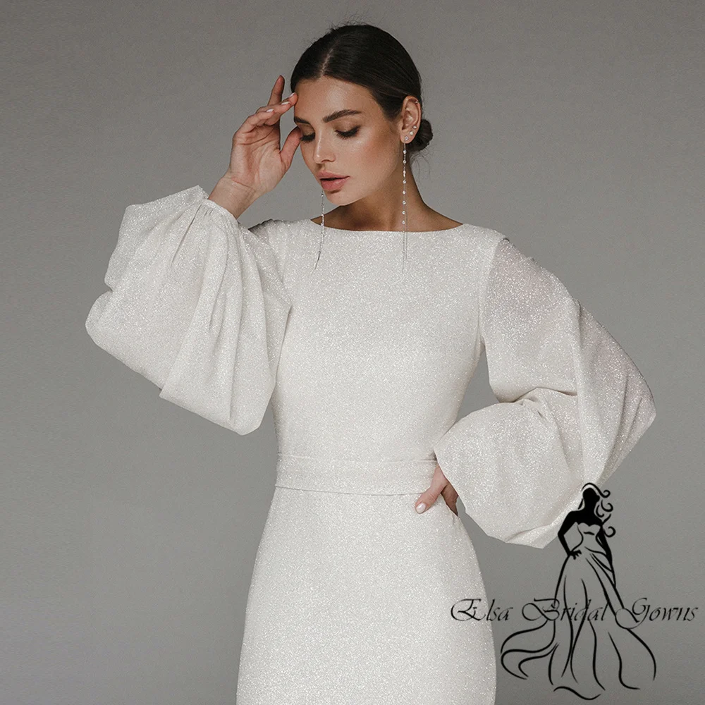 Sparkle Wedding Dresses 2023 New Arrivals Puff Sleeves Zipper Long Bride Dress O-Neck Custom Mermaid Simple Elegant Party Gowns