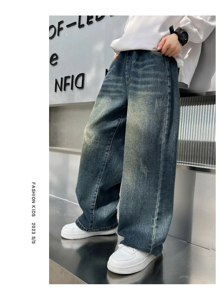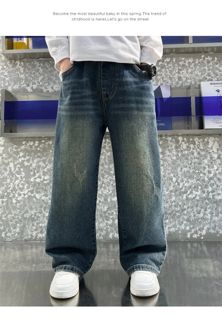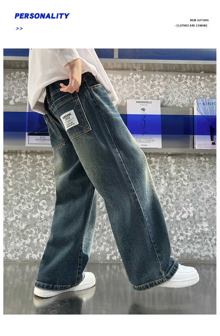Spring Autumn Kids Casual Jeans for Big Boy Child Fashion Vintage Trousers Cotton Sweatpants Teenage Baby Boys Clothes Jeans