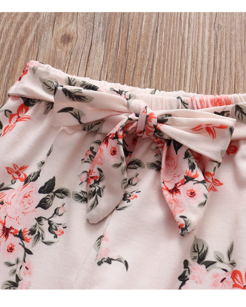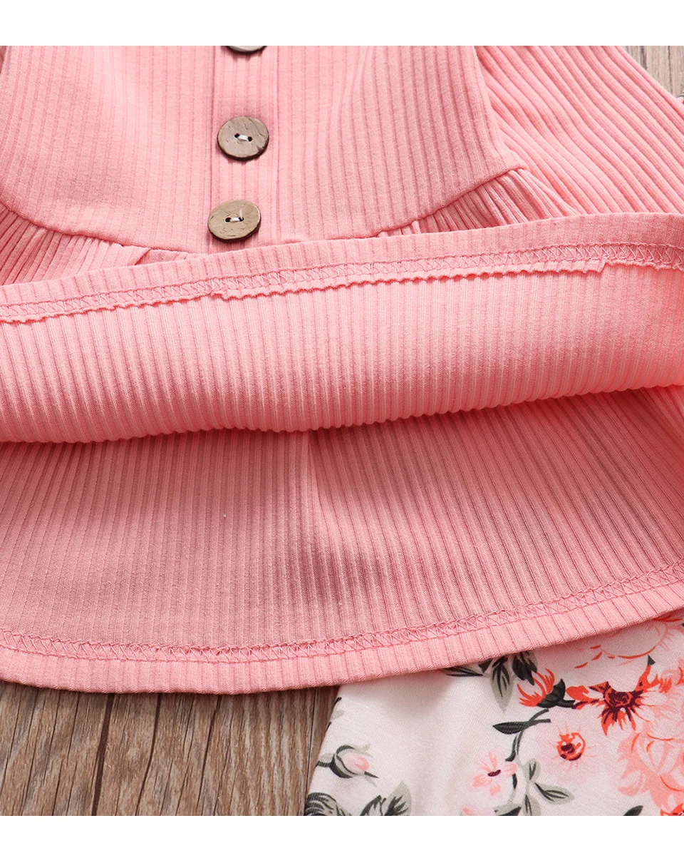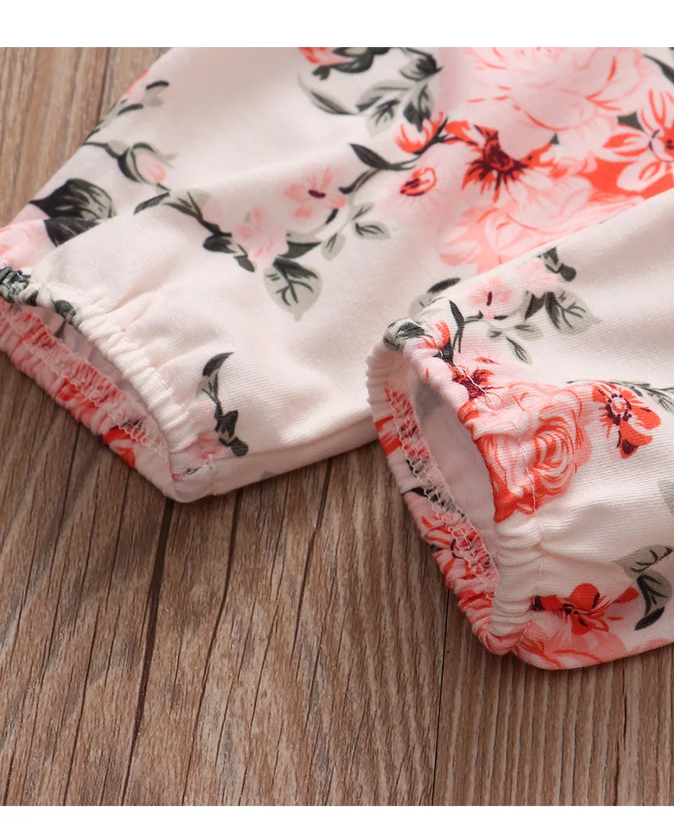 Spring Newborn Baby Girl Clothes Set Cute Pink Color Long Sleevs Tops Flower Pants Headband 0-24M 3Pcs Infant Girl Clothing Suit