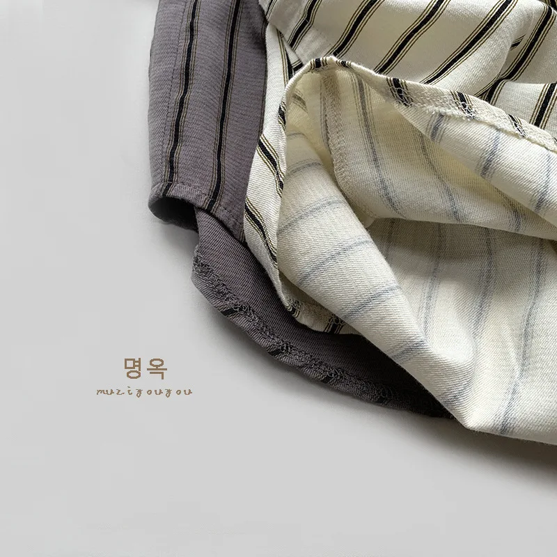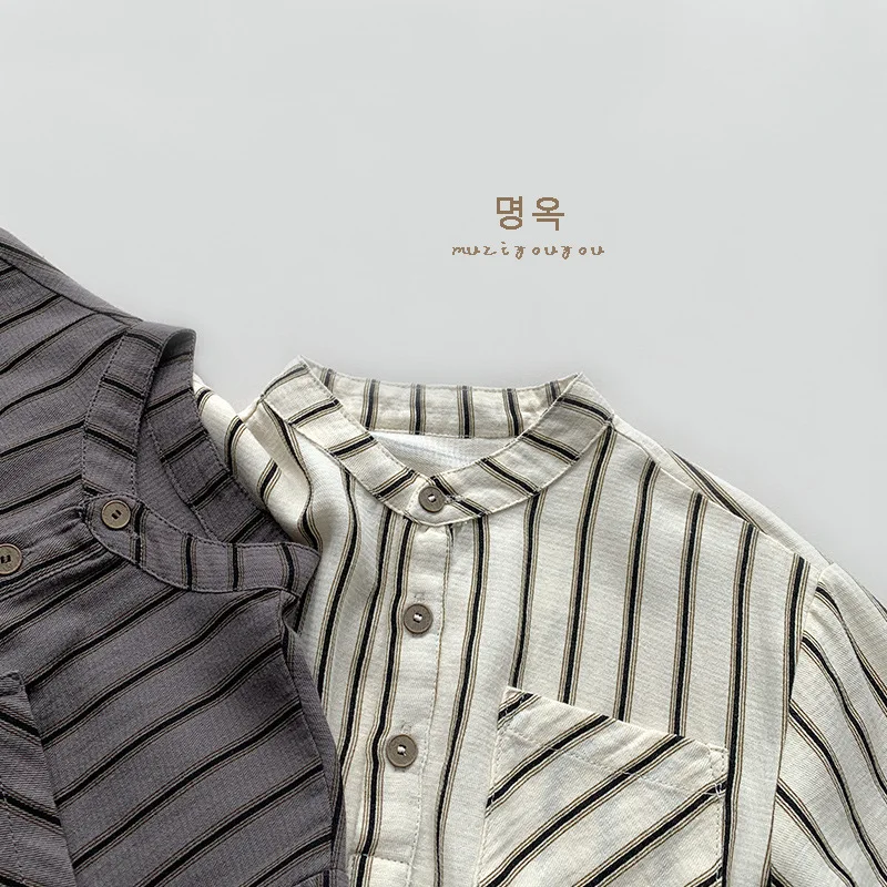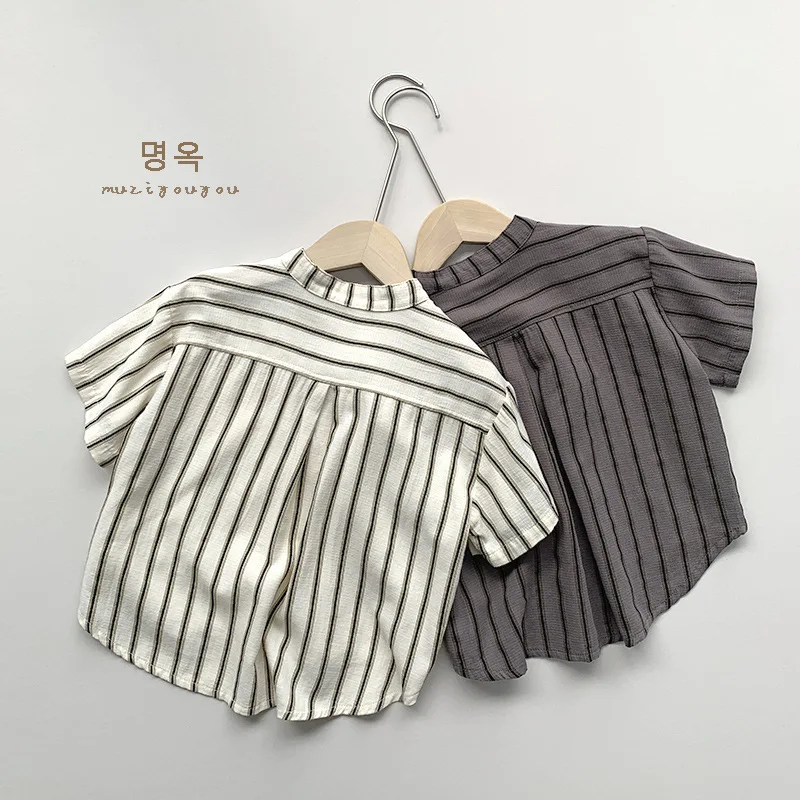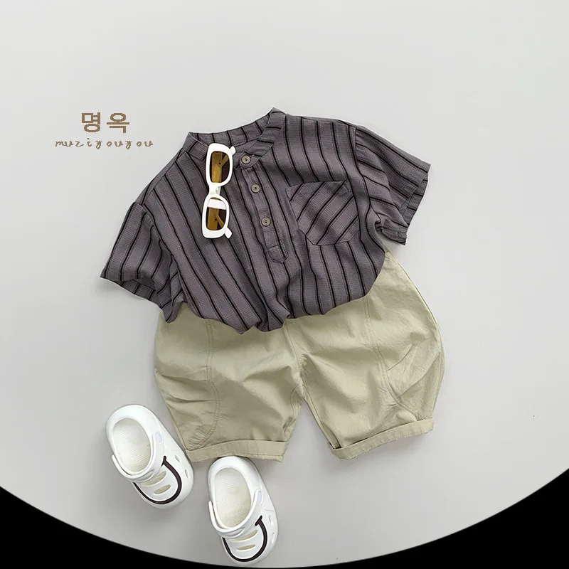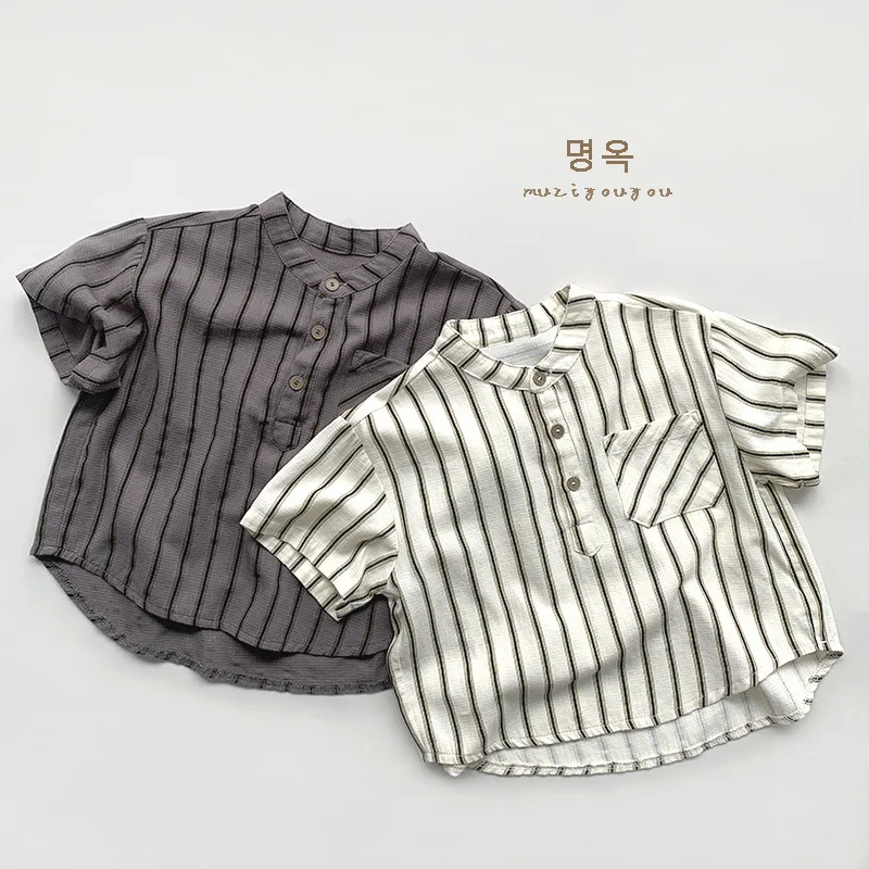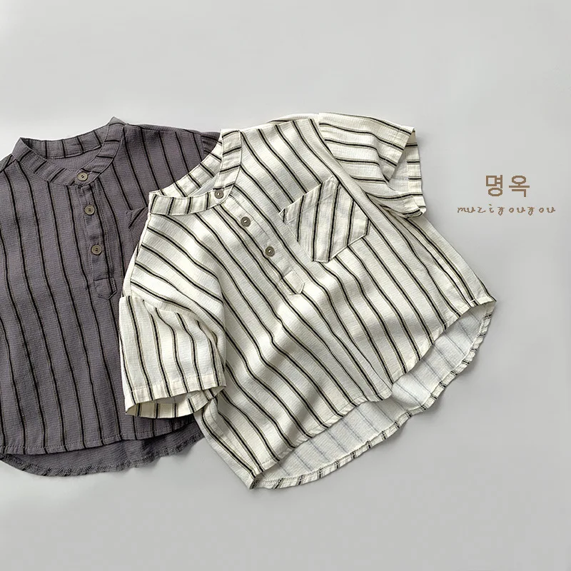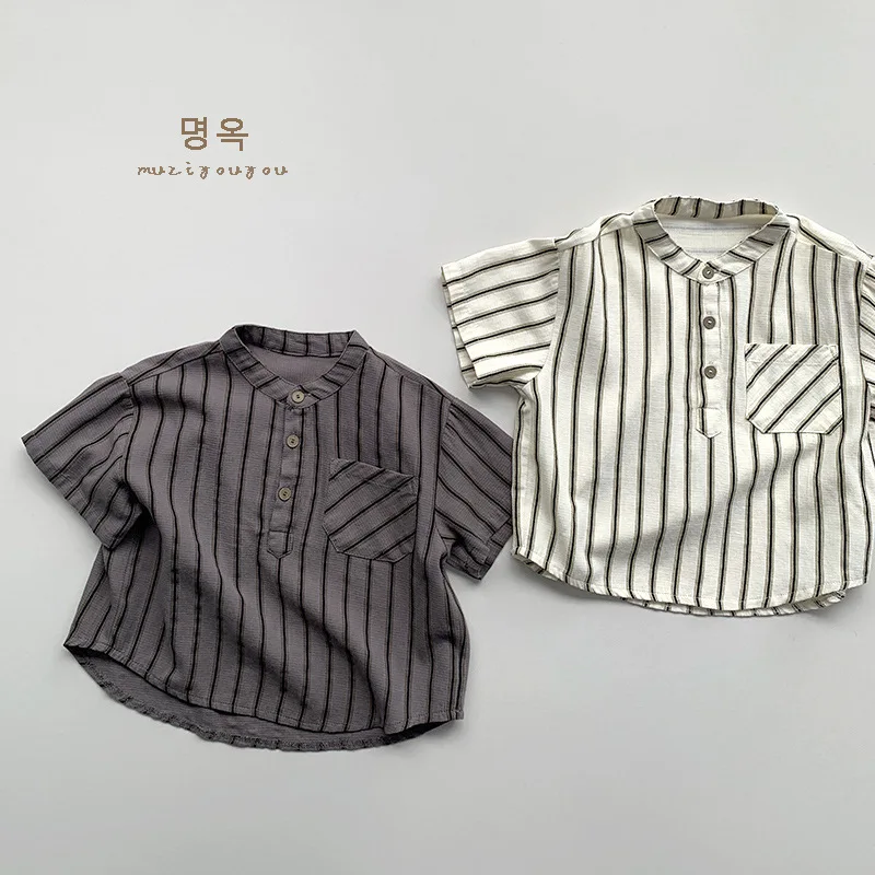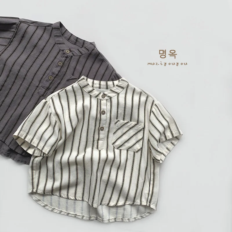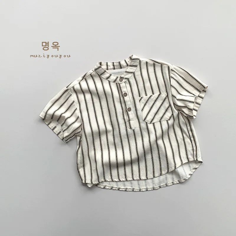 Spring Summer Children Shirts 1-8Y Boys Cotton Striped Pocket Casual Short Sleeve Tops Korean Toddler Wear For Kids Clothing New