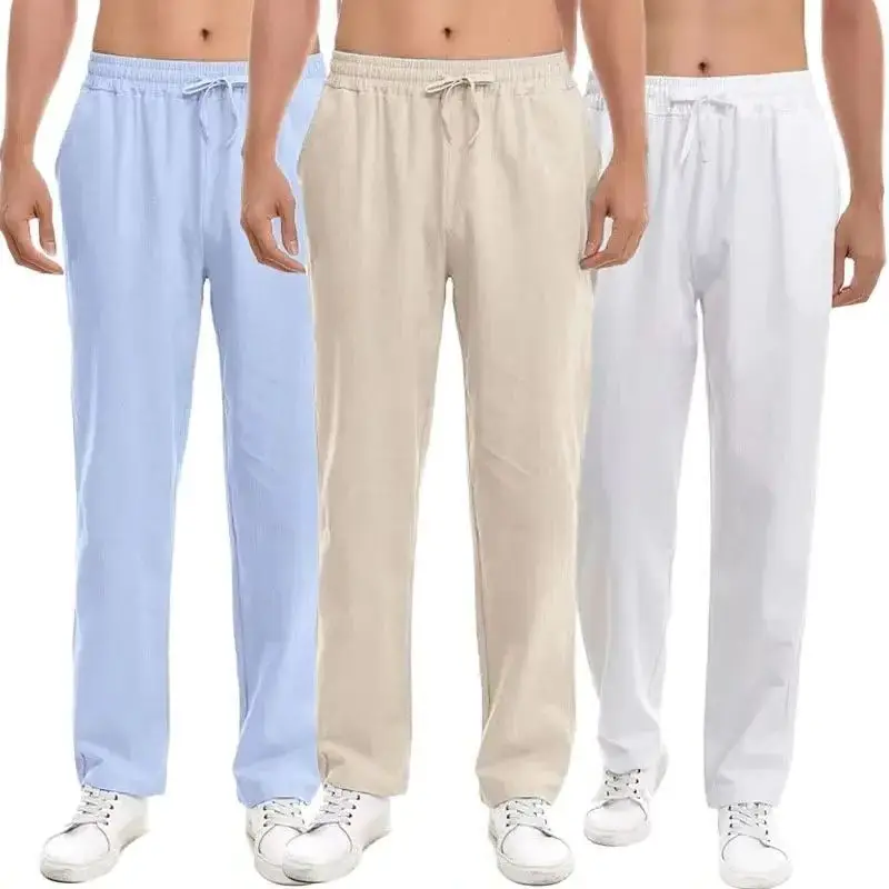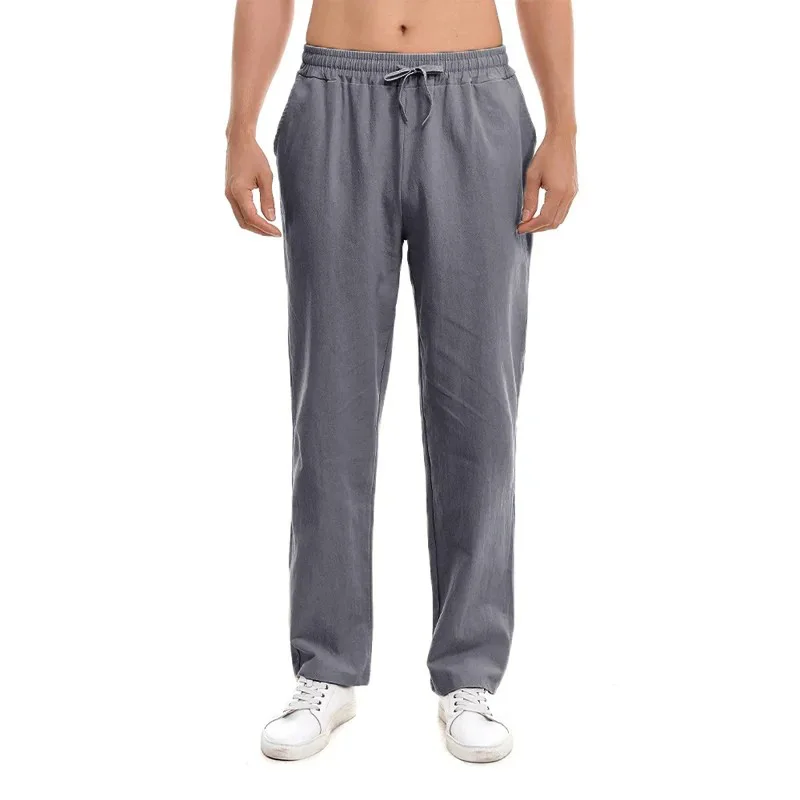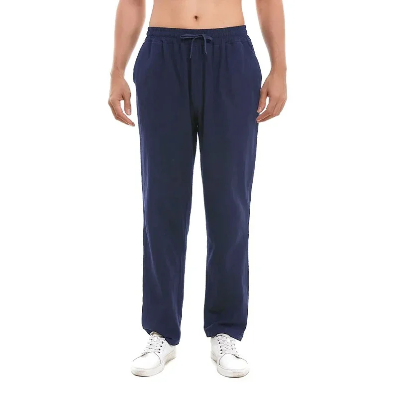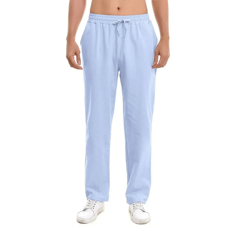 Name: Spring Summer Long Pants for Men Cotton Linen Solid Color Lightweight Pants Casual Sweatpants Elastic Waist Basic Style Trousers