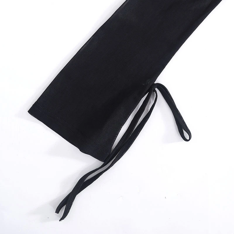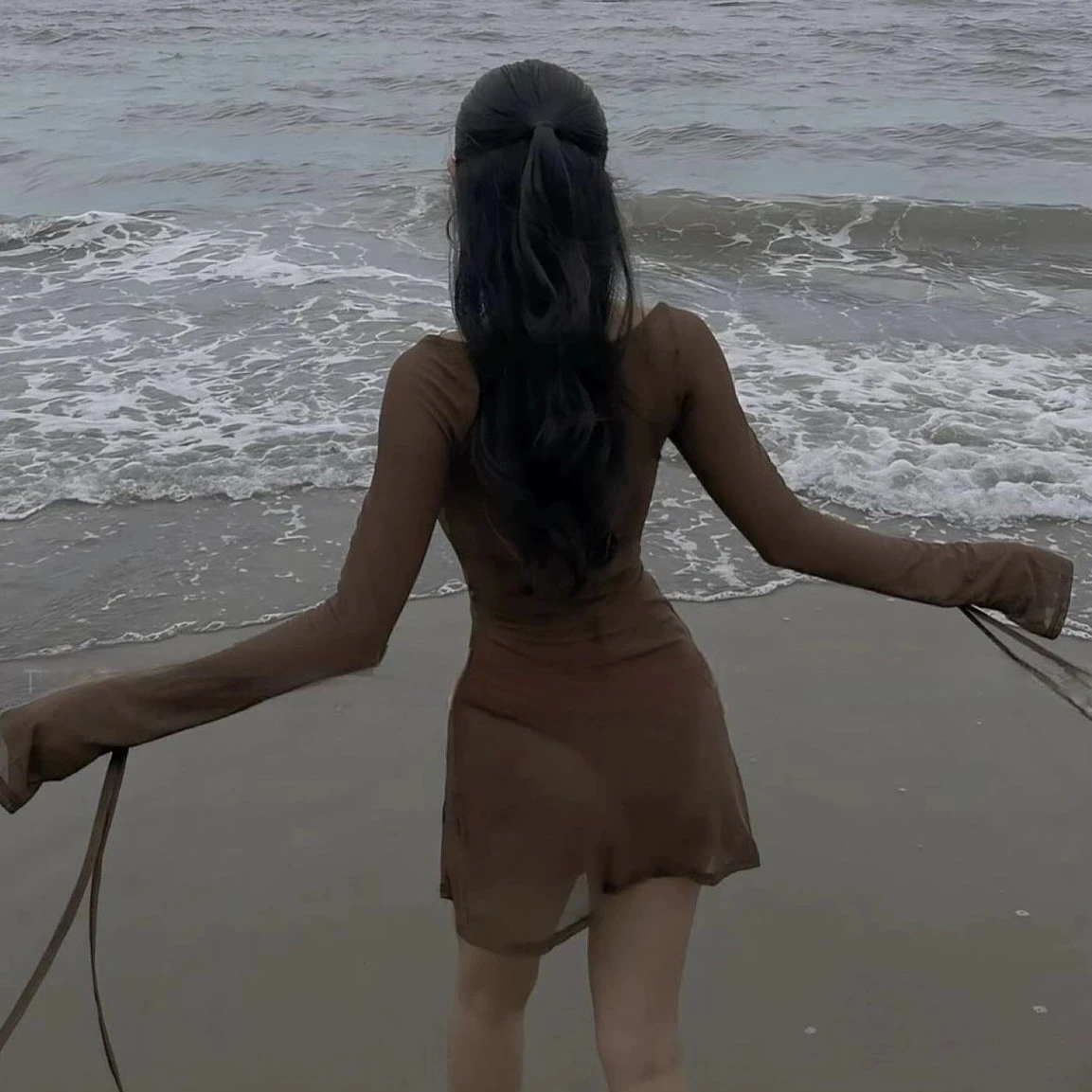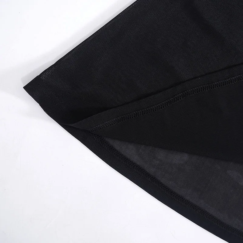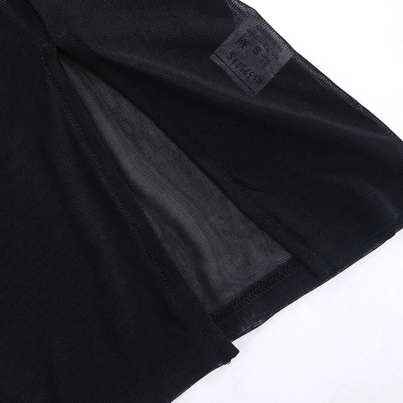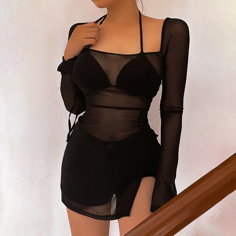 Square collar solid color mini dress with mesh fabric, sexy evening dress, club set, transparent vest, women’s long sleeves