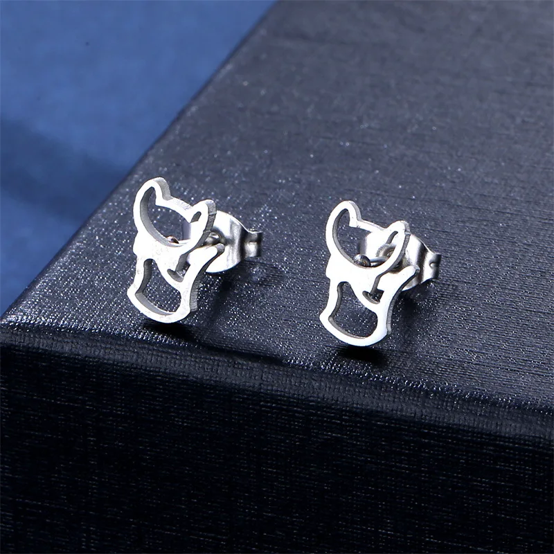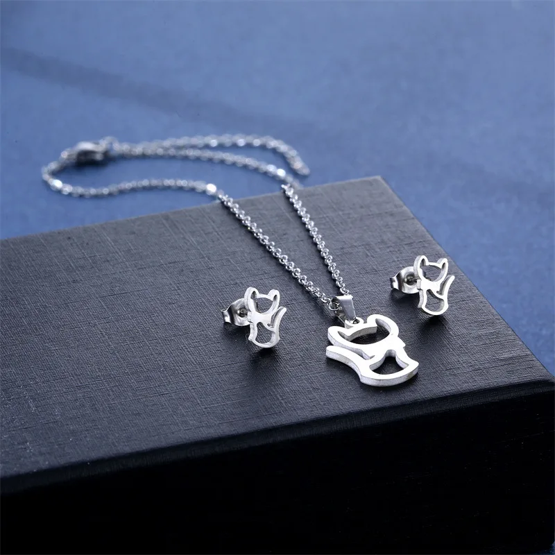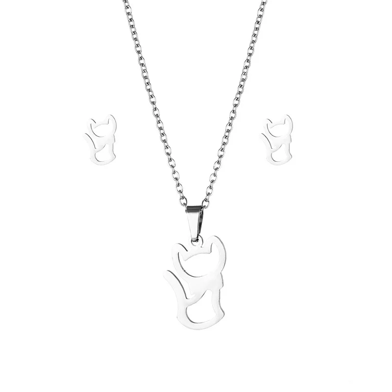 Stainless Steel Necklace earrings set Women Man Cat Pendant Silver Color Pendant Necklace Engagement Jewelry Gifts