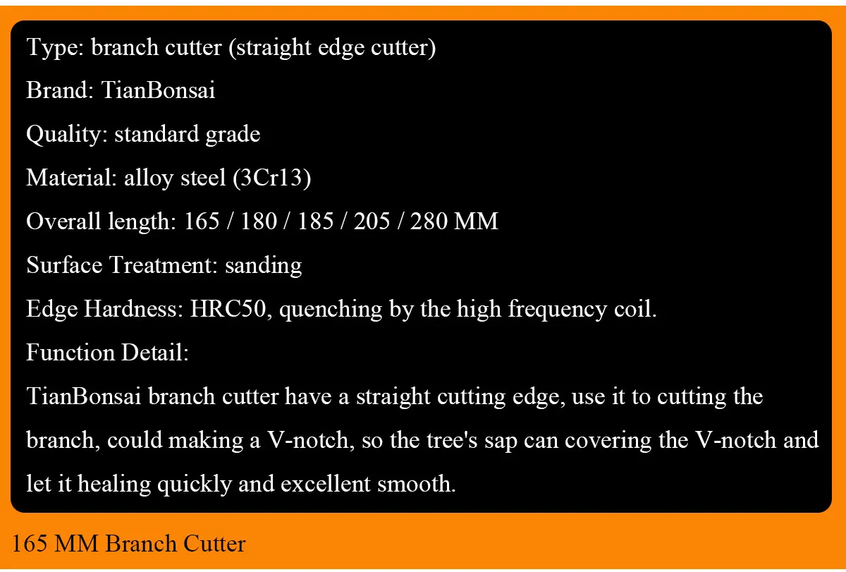 To popularize the bonsai art, TianBonsai supplying the standard grade bonsai tools to the bonsai beginner, it’s material is 3Cr13 alloy-steel, handmade by skilled worker from TianBonsai. The 3Cr13 alloy steel, which contains 0.3% Carbon and 13% Chromium, after quenching treatment, it’s hardness is over HRC50. this grade tools also have nice quality and complete function. it would let you have the nice tools for cross the threshold of the bonsai art easily.
