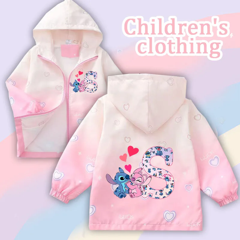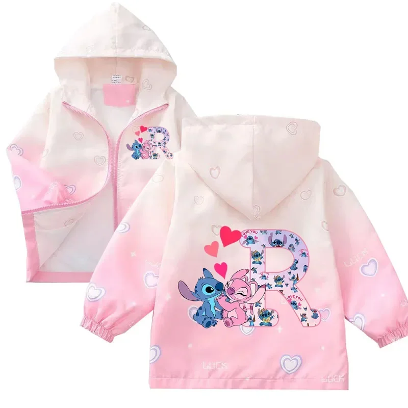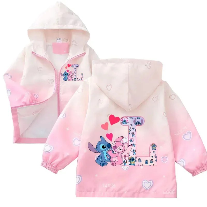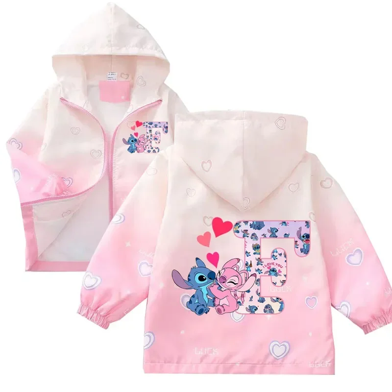 STITCH Kid Outdoor Jackets Cartoon Letter A-Z Girls Sweatshirt Coats High-Quality Windbreaker Girl Autumn Winter Zip Jacket Gift