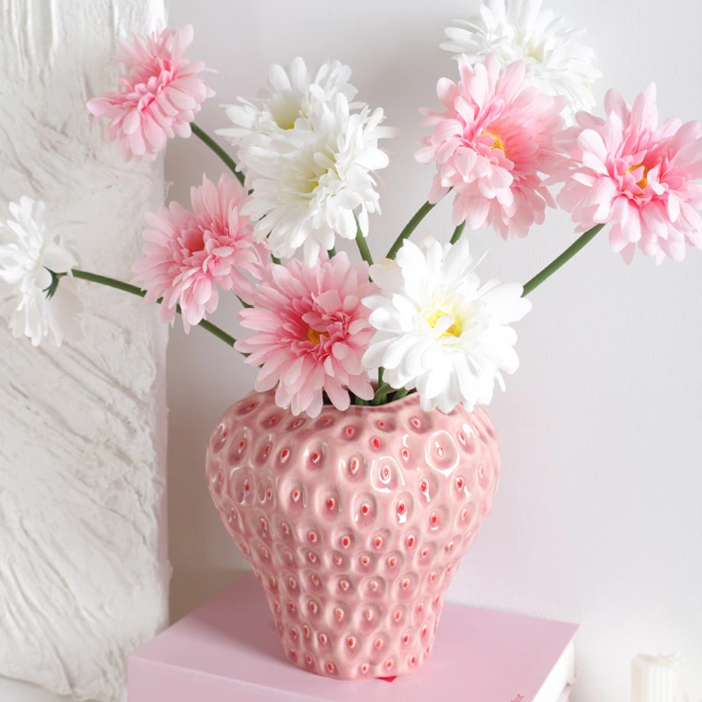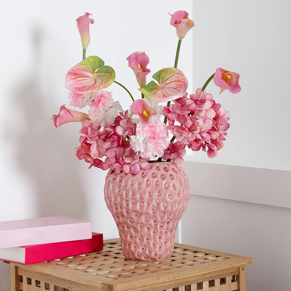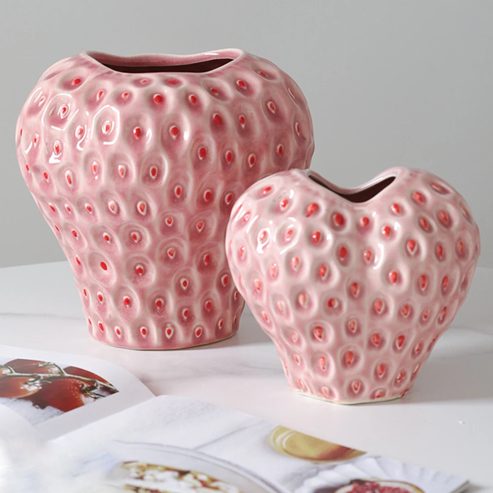 Flower Pot Vase Ceramic Strawberry Shaped Planter Decorative Pink Flower Vase Decorative Ornament Flower Arrangement