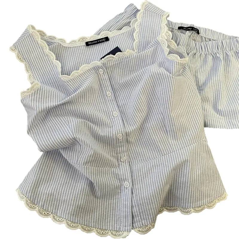 Striped Women Pajamas Summer Sleepwear Sleeveless Shorts Sets 2 Pieces Lace Night Wears Tank Korean Sleeping Home Suit 2025 New