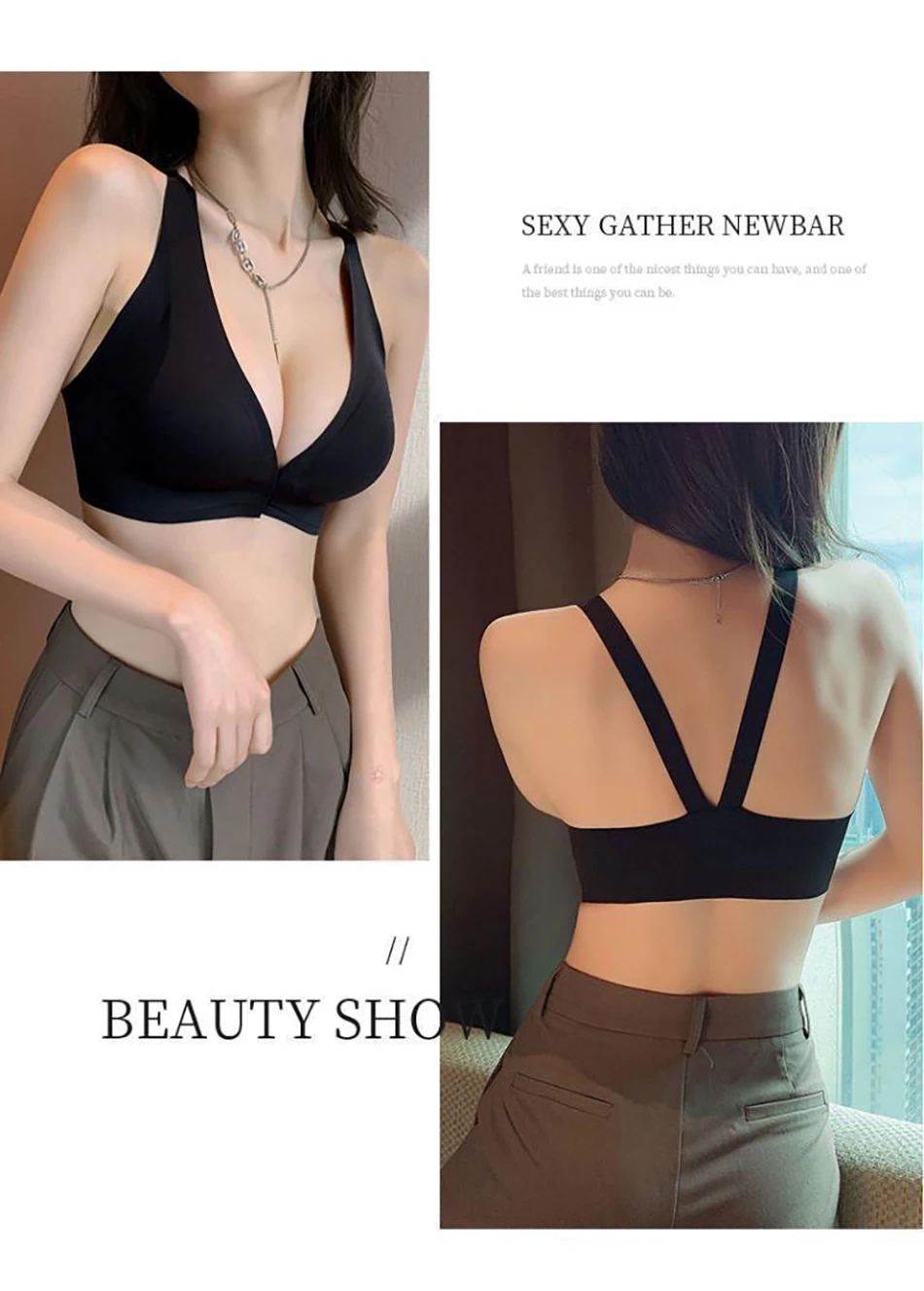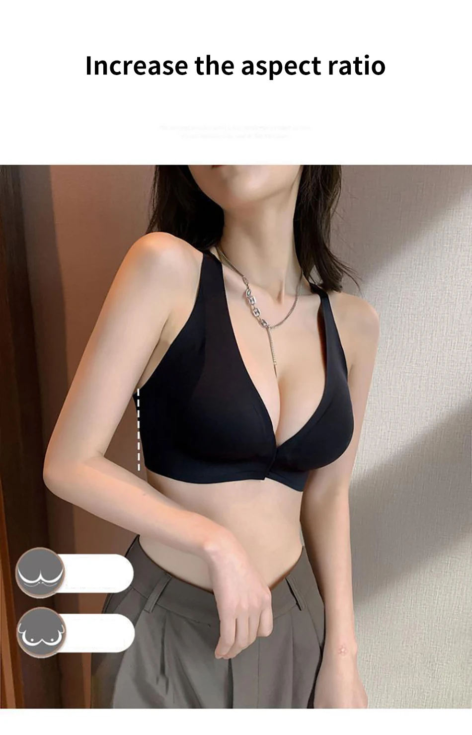 Stylish Sexy Front Open Gather Bra with Latex Padding Ice Silk Fabric Backless Beautiful Easy Wear Perfect for Active Lifestyles