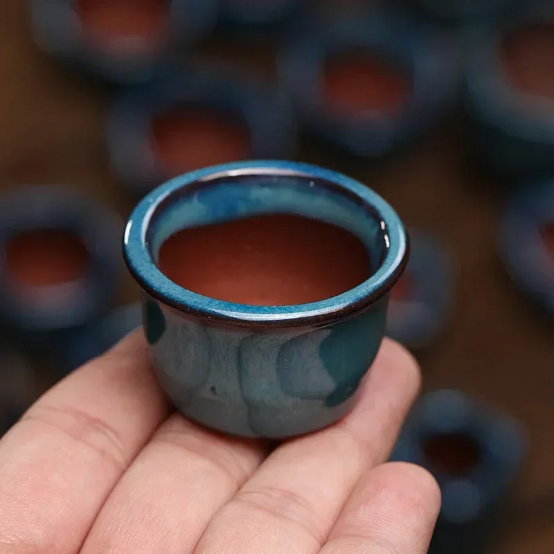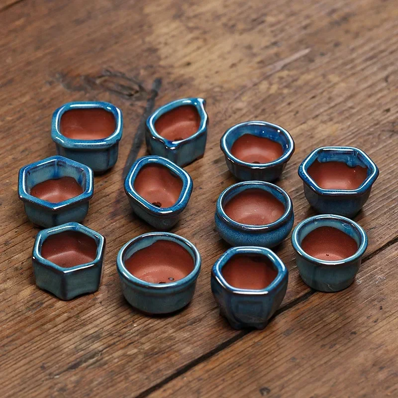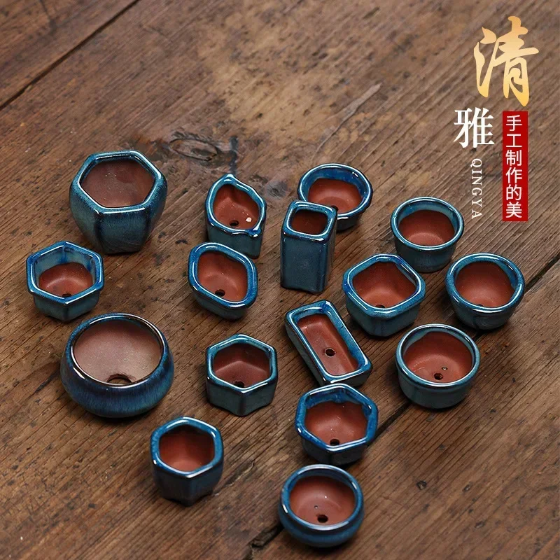 Succulent thumb flowerpot, purple clay ceramic potted plant, cute and creative, minimalist indoor blue glazed mini flowerpot