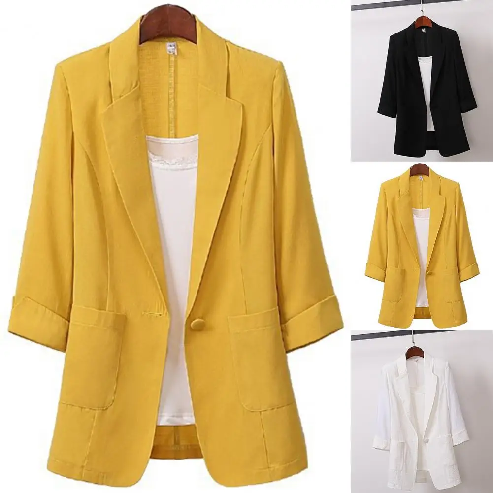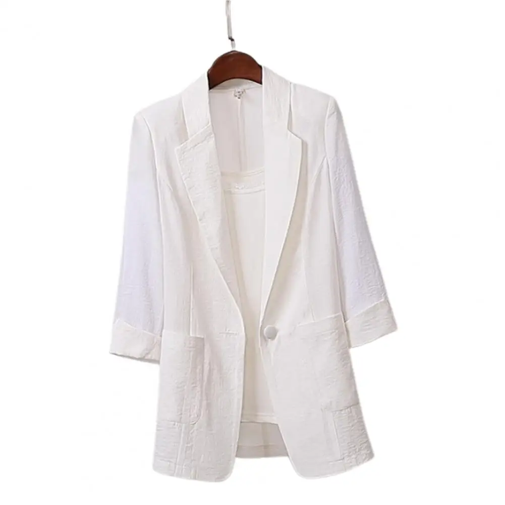 Suit Blazer Basic Cotton Linen Three Quarter Single Button Women’s Jacket Summer 2023 Korean Fashion Casual Short Jackets Coat