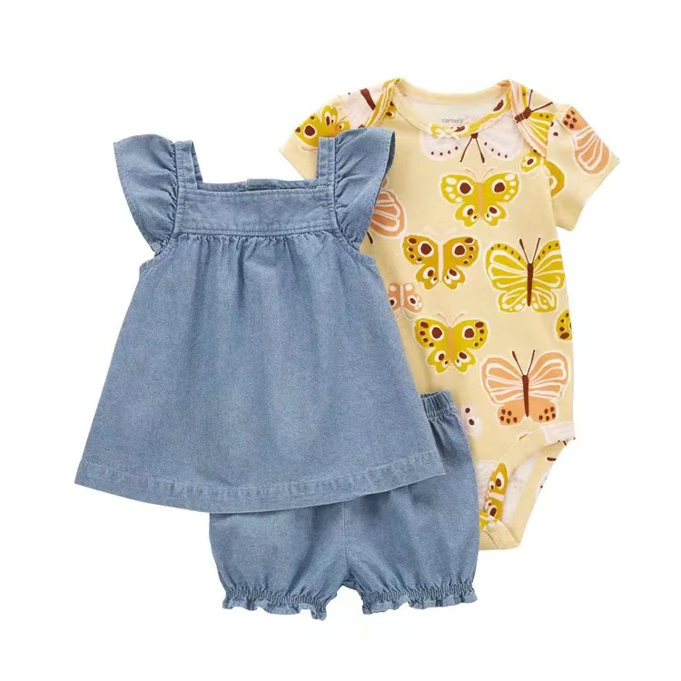 Summer Baby Girl Clothes Set Fashion Flower Infant Outfits Cotton Short Sleeved Bodysuit Shorts 3Pcs Toddler kids Clothing 6-24M