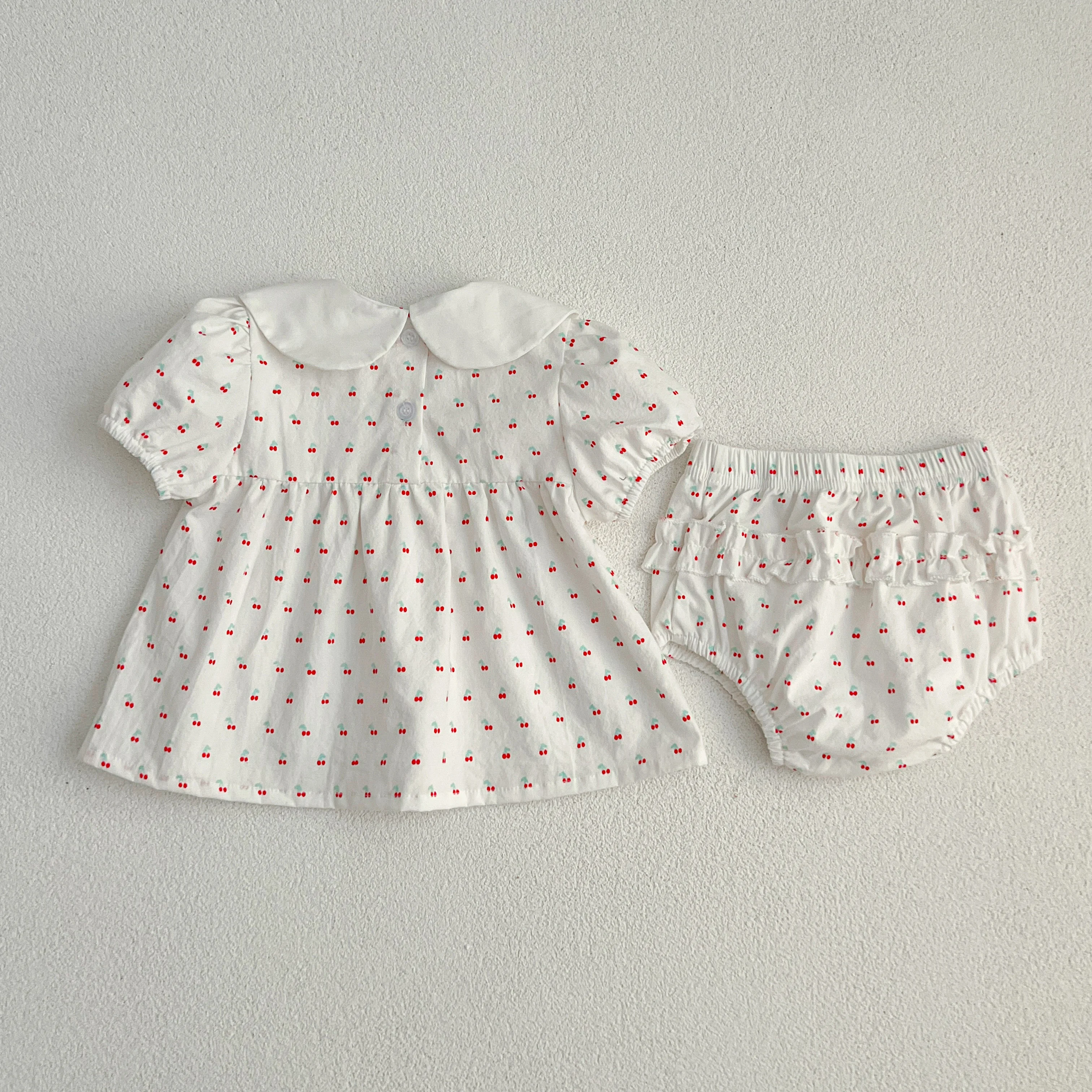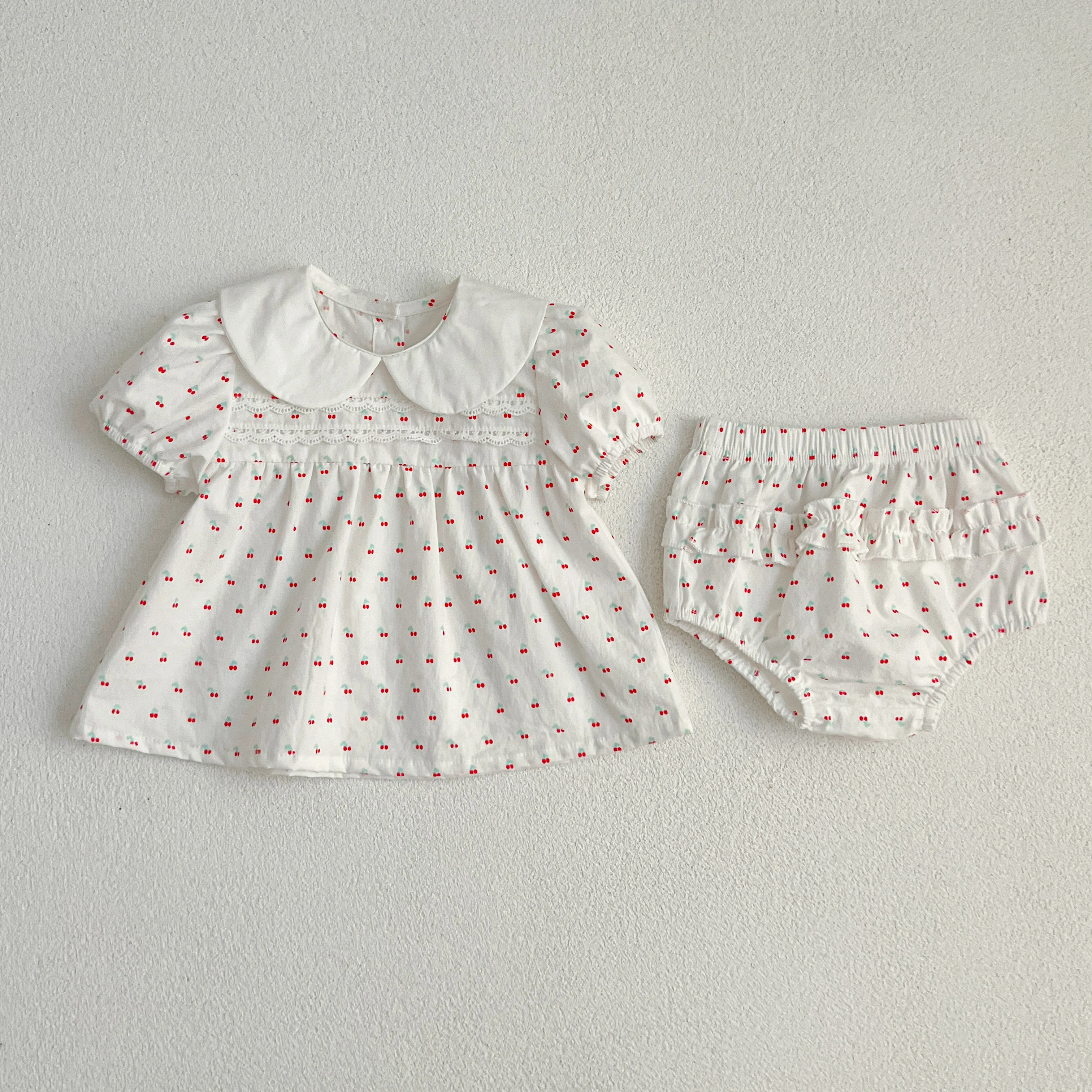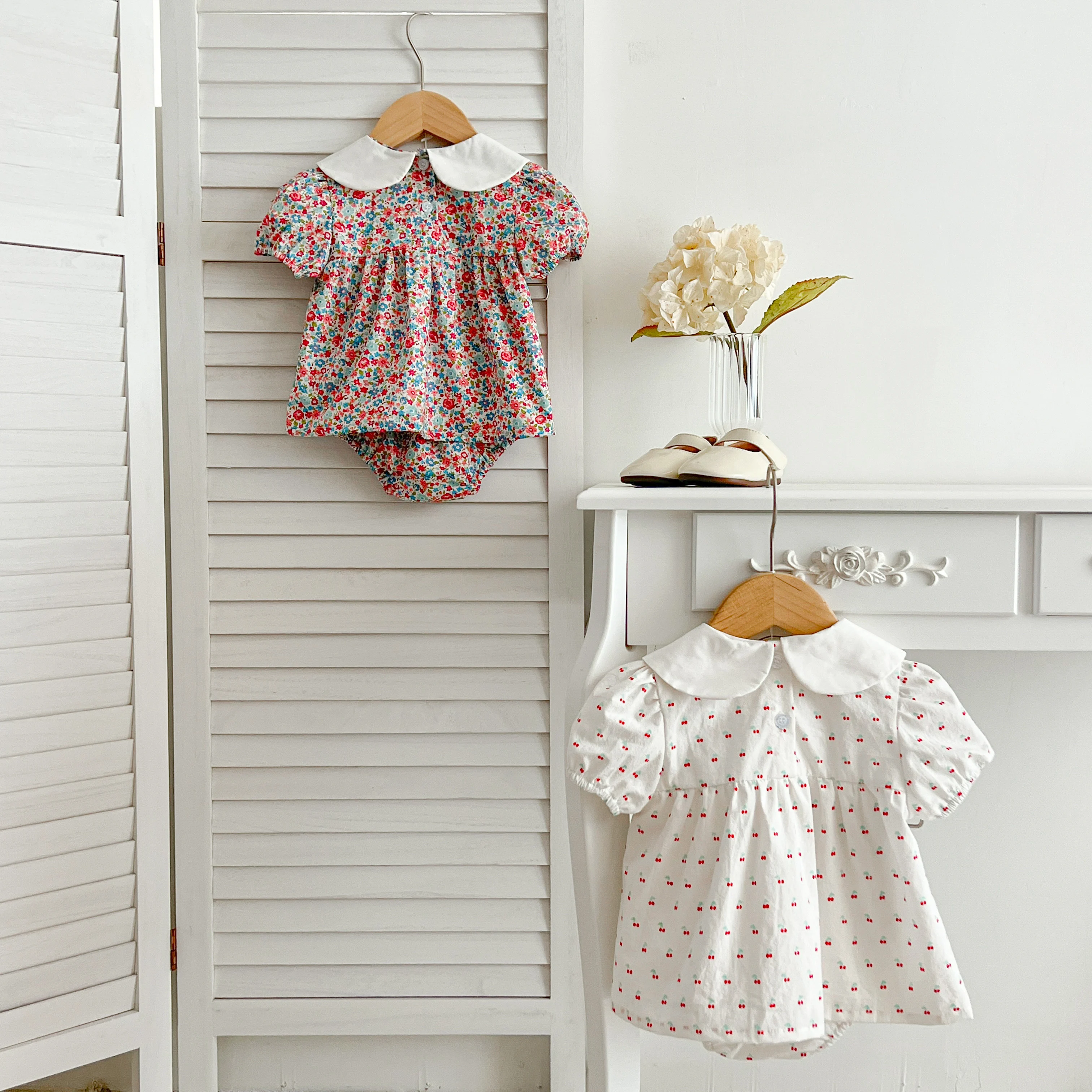 Summer Baby Girls Clothing Sets Puff Sleeve Top Floral Print Blouse + PP Shorts Infant Newborn Girl Clothes Suit Bbay Cherry Set