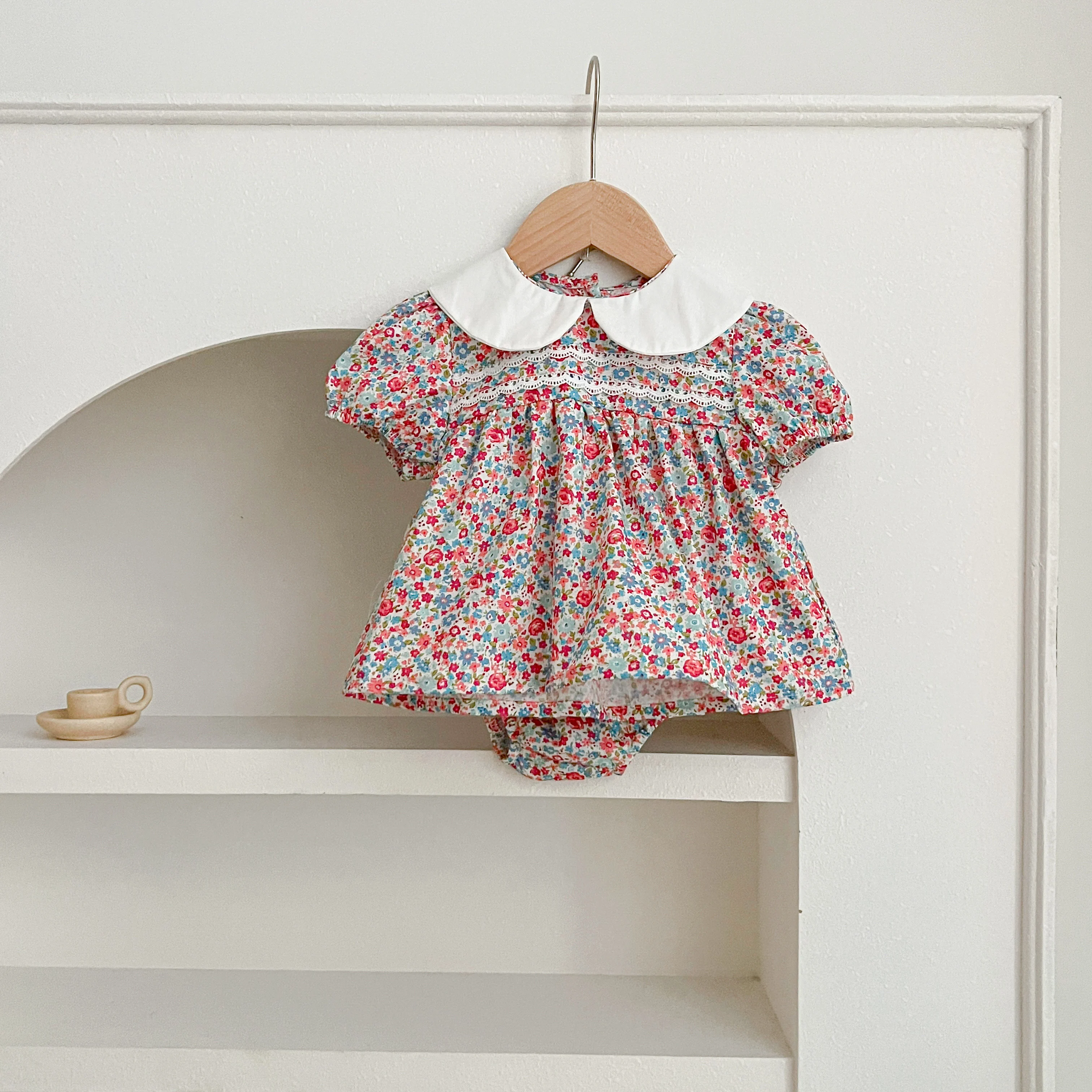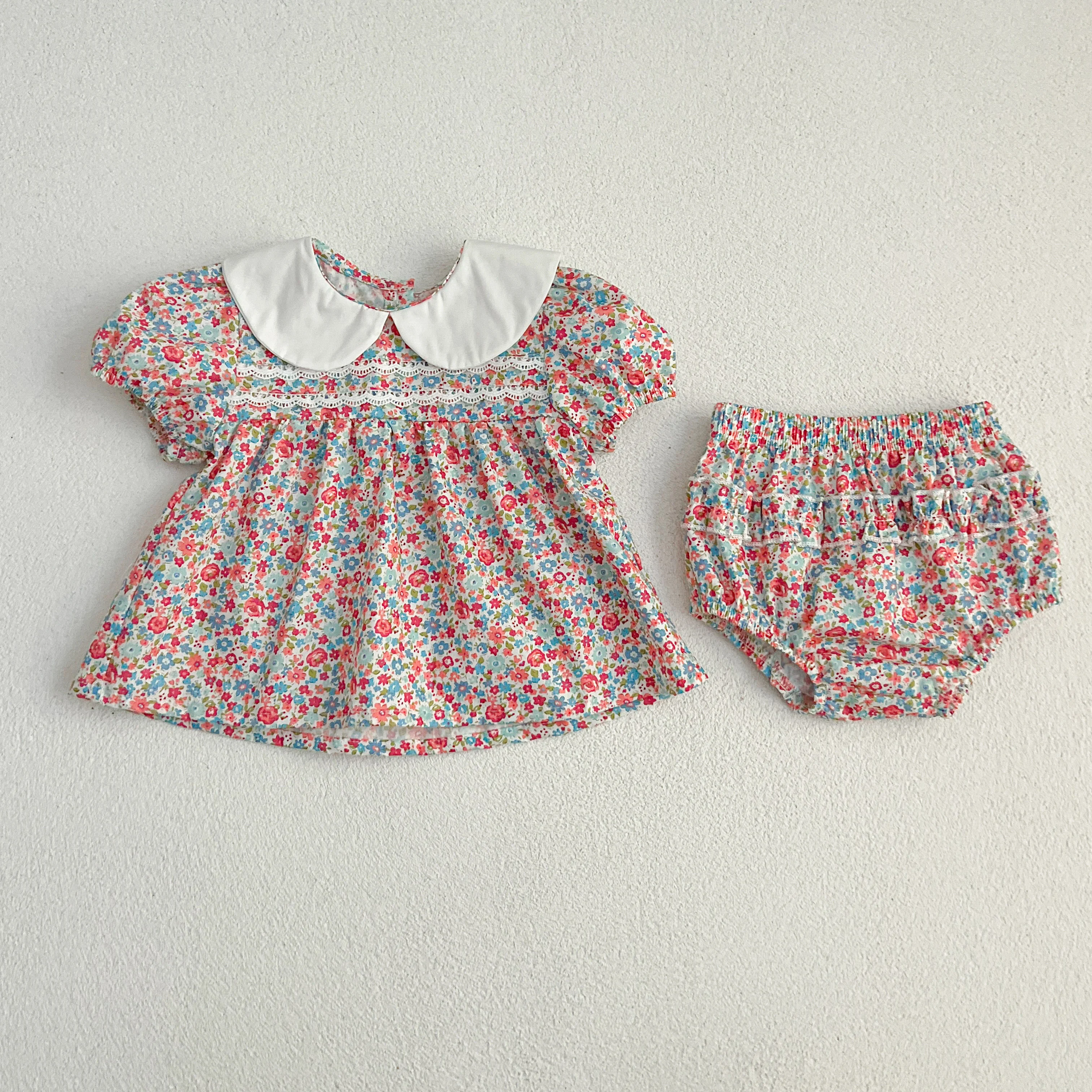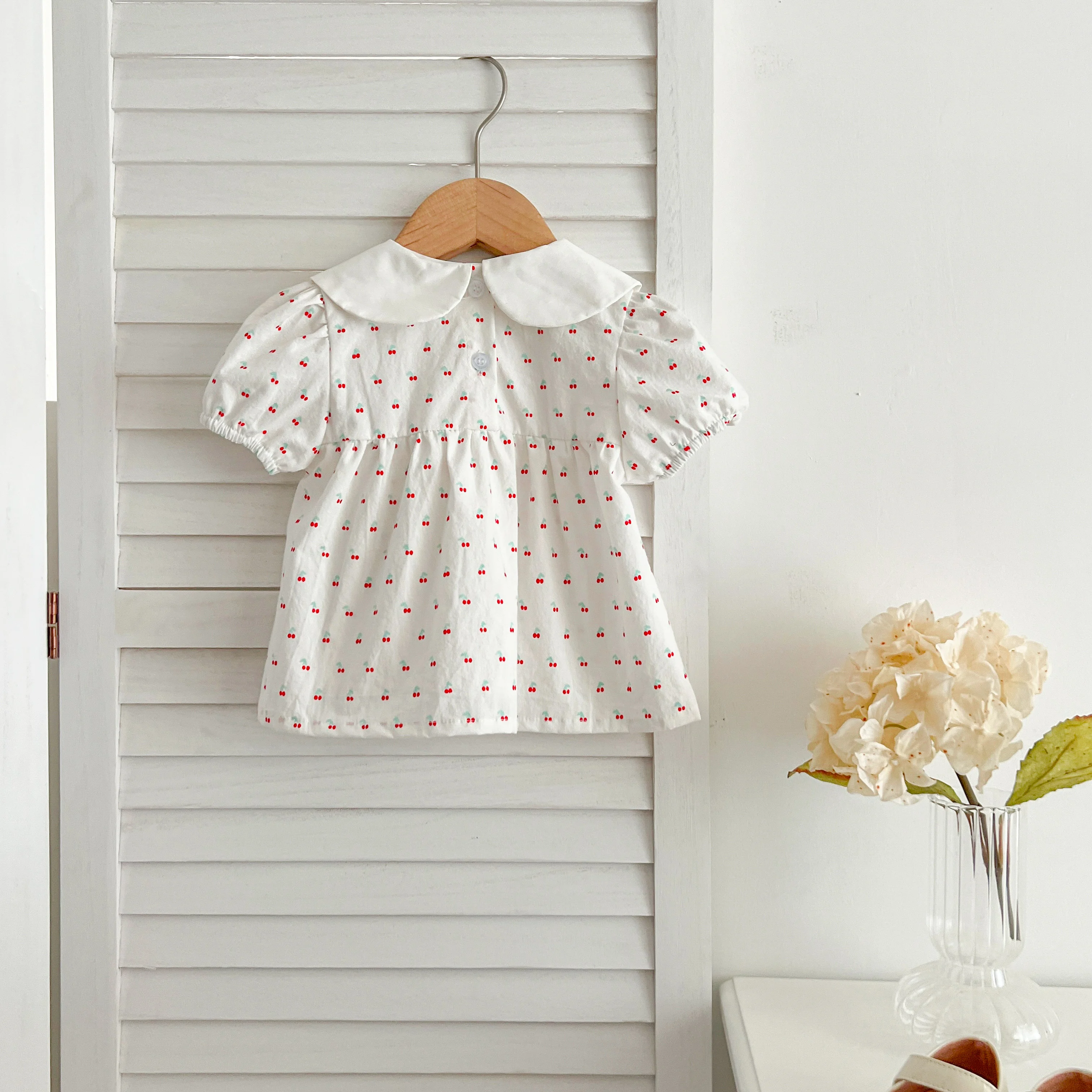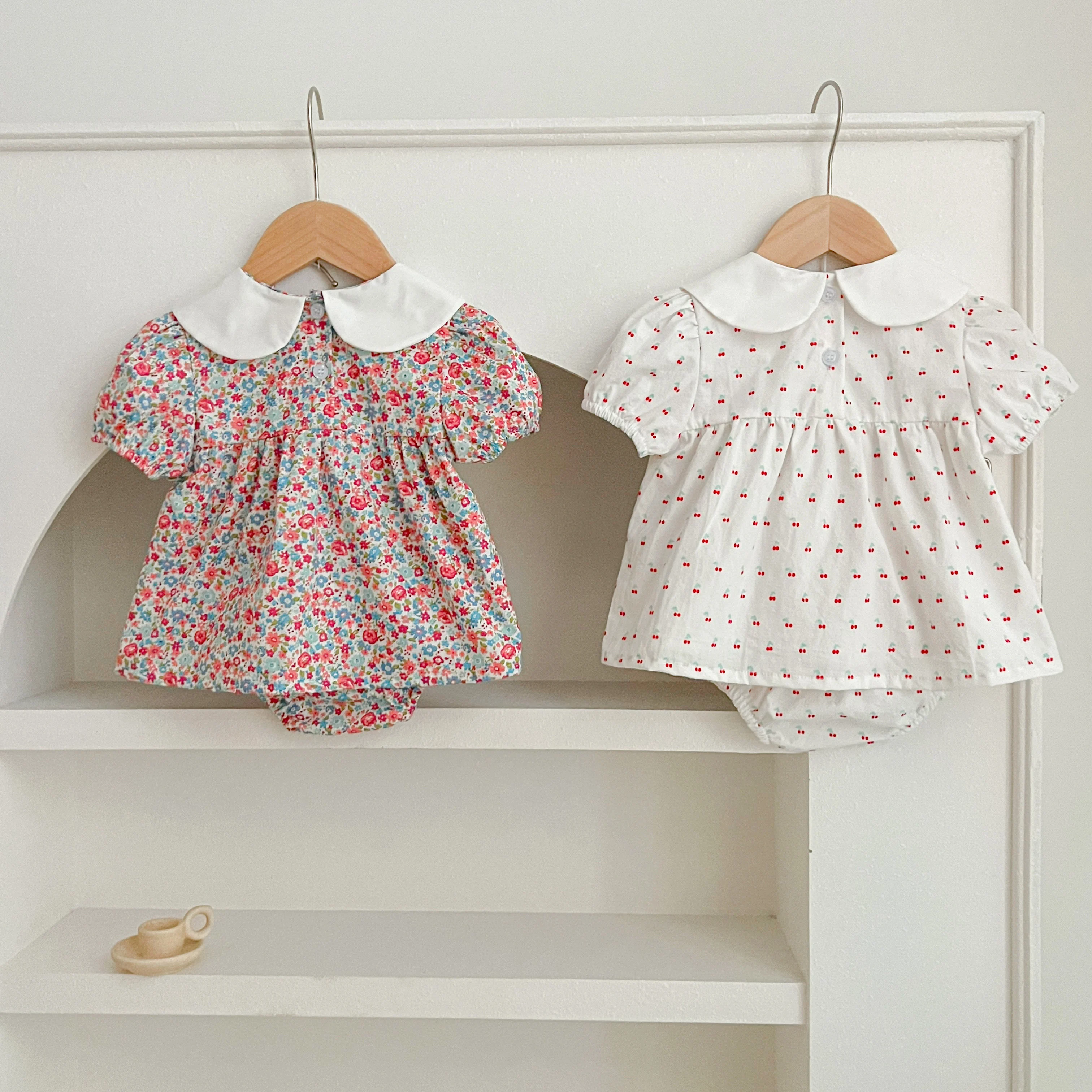 Summer Baby Girls Clothing Sets Puff Sleeve Top Floral Print Blouse + PP Shorts Infant Newborn Girl Clothes Suit Bbay Cherry Set
