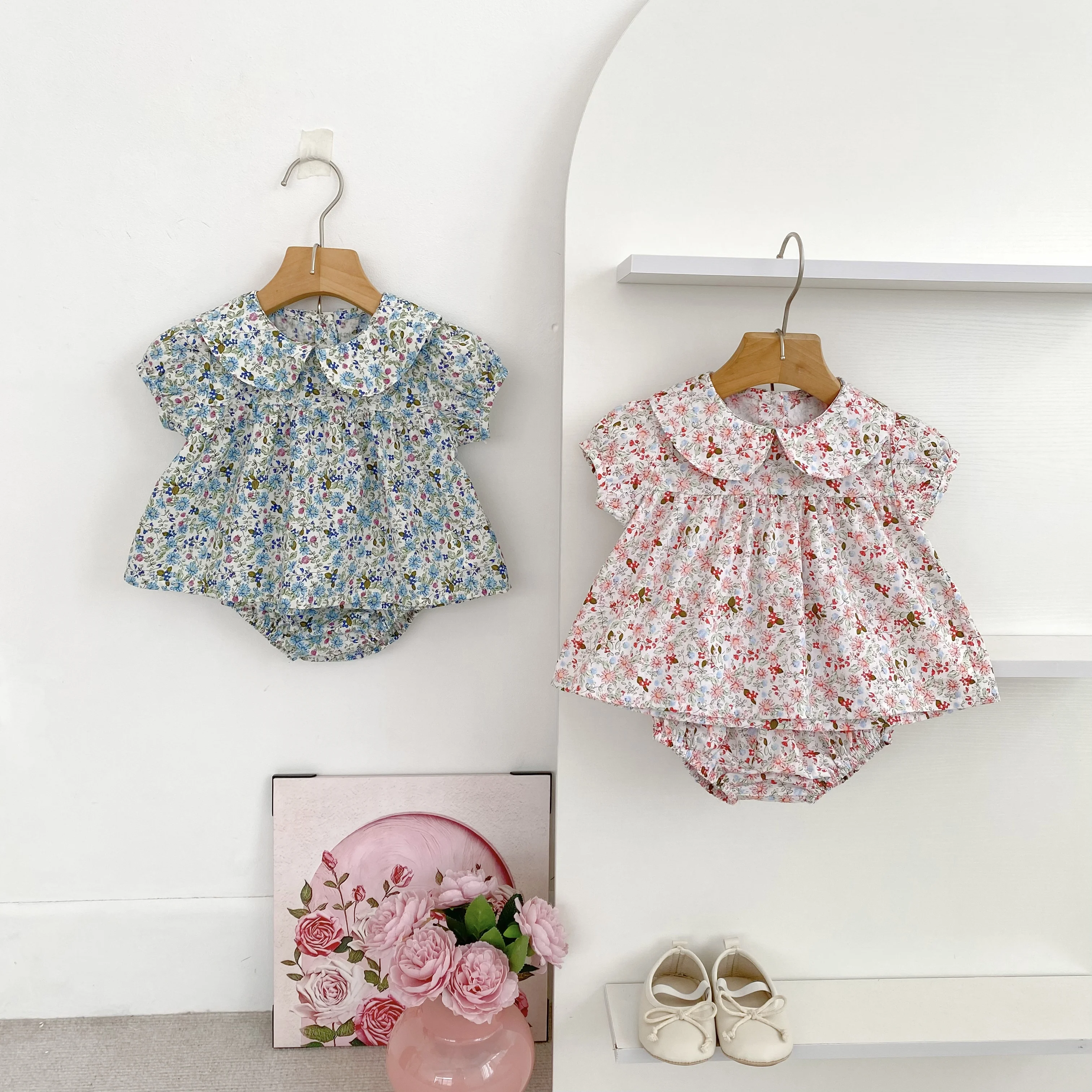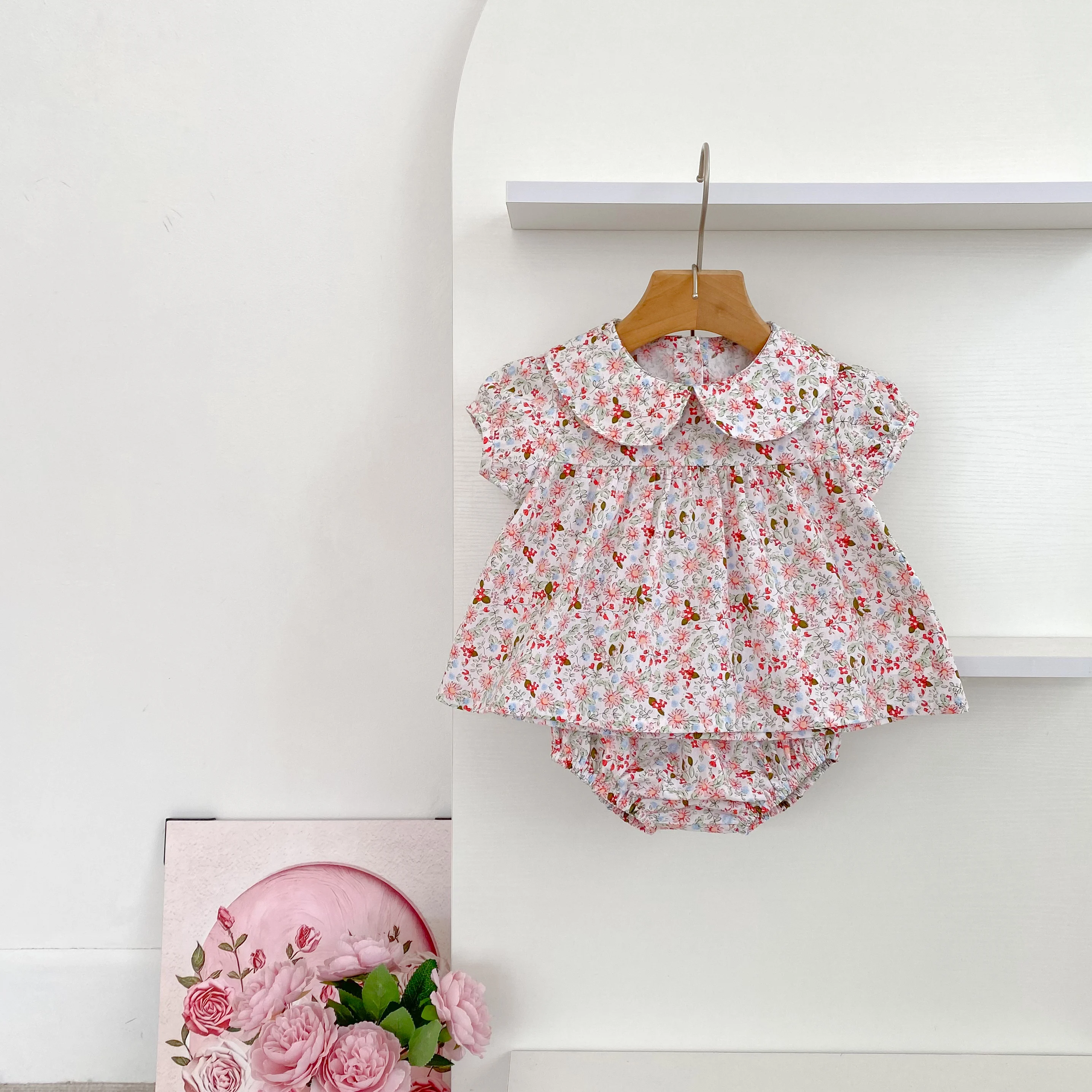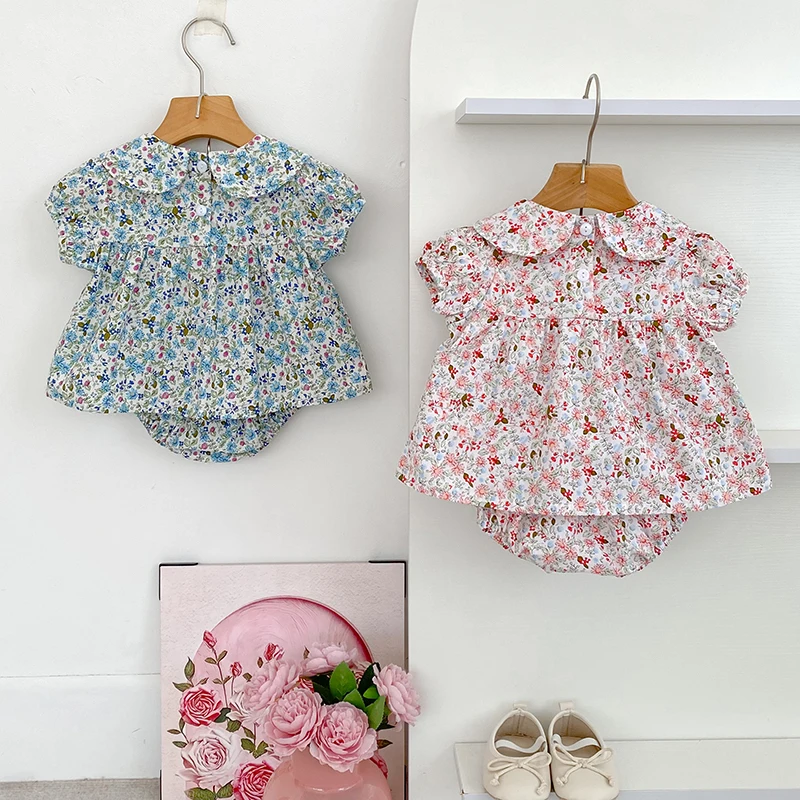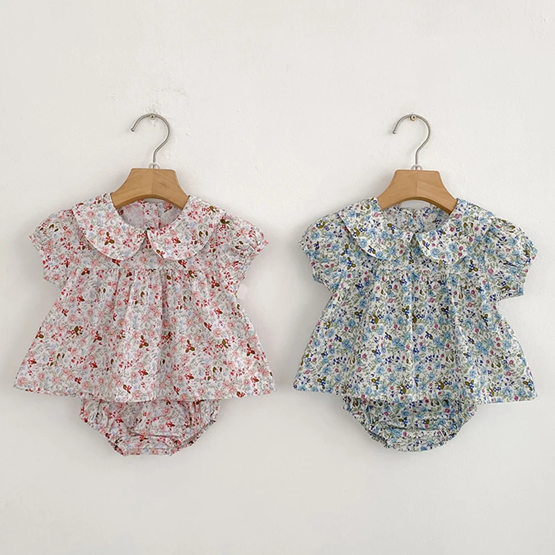 Summer Baby Girls Sets Short Sleeve Pure Flower T-shirt +PP Shorts Suit Sweet Baby Girls Clothes Infant Baby Girls Clothing Suit