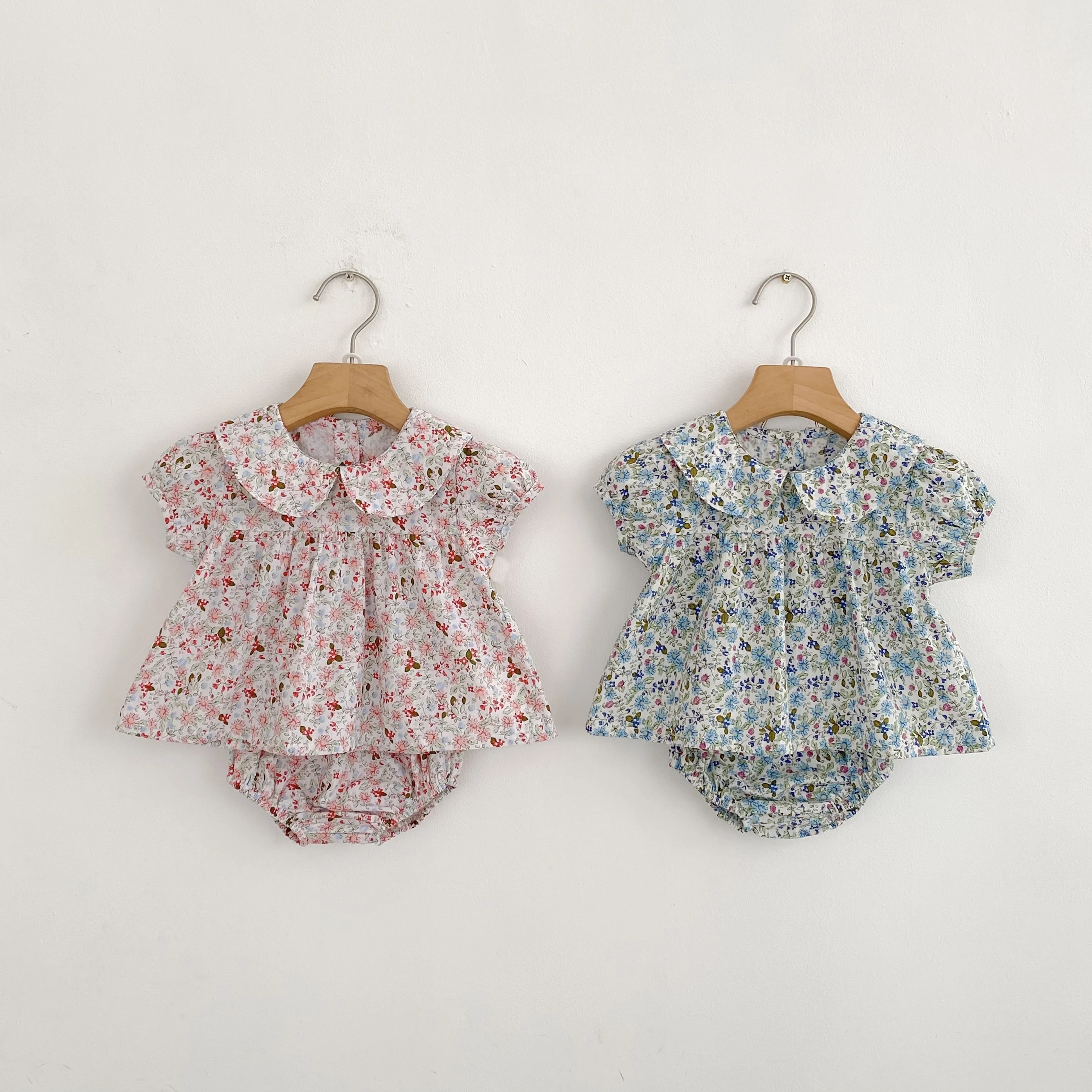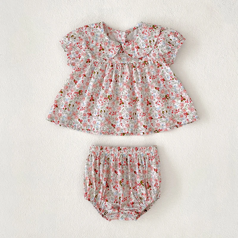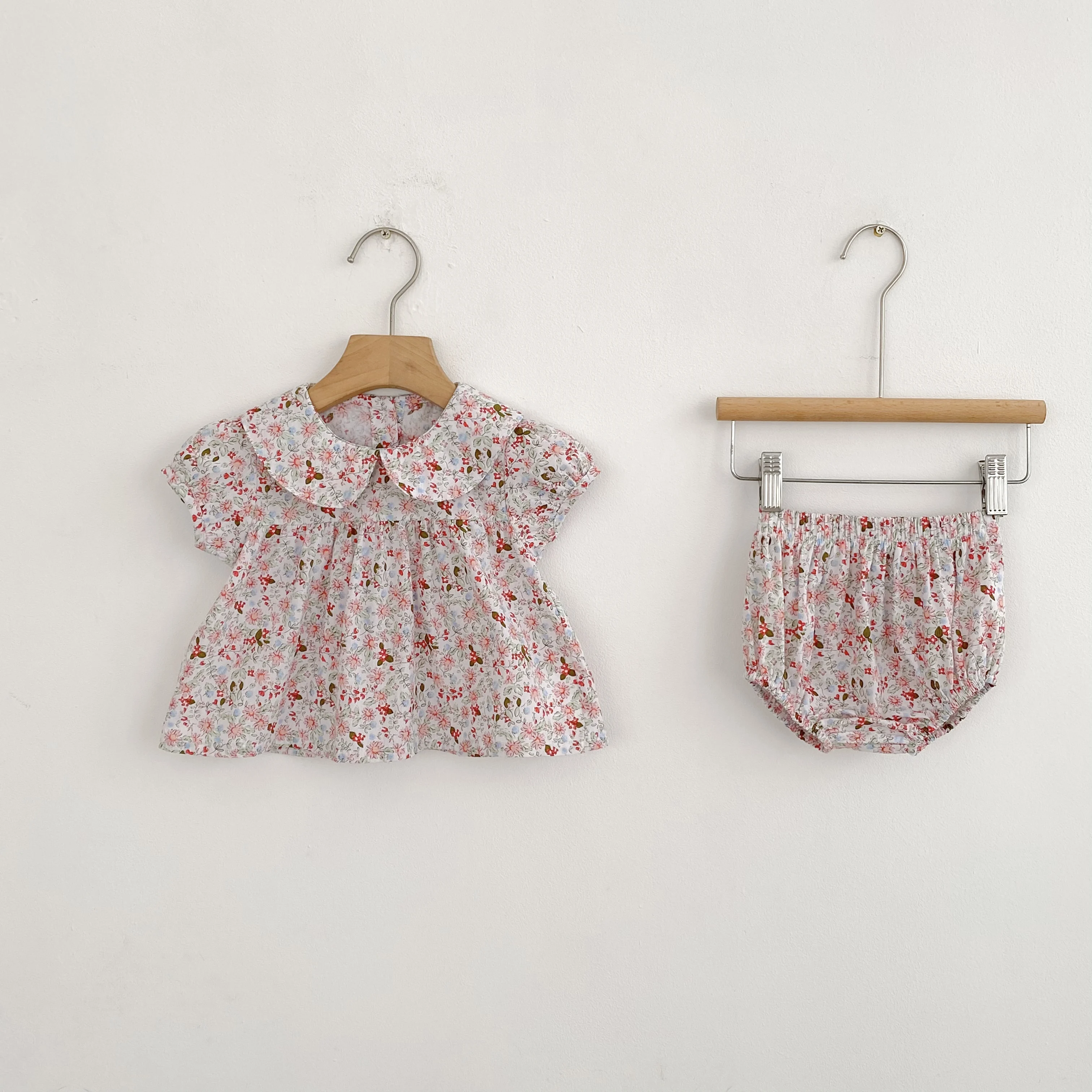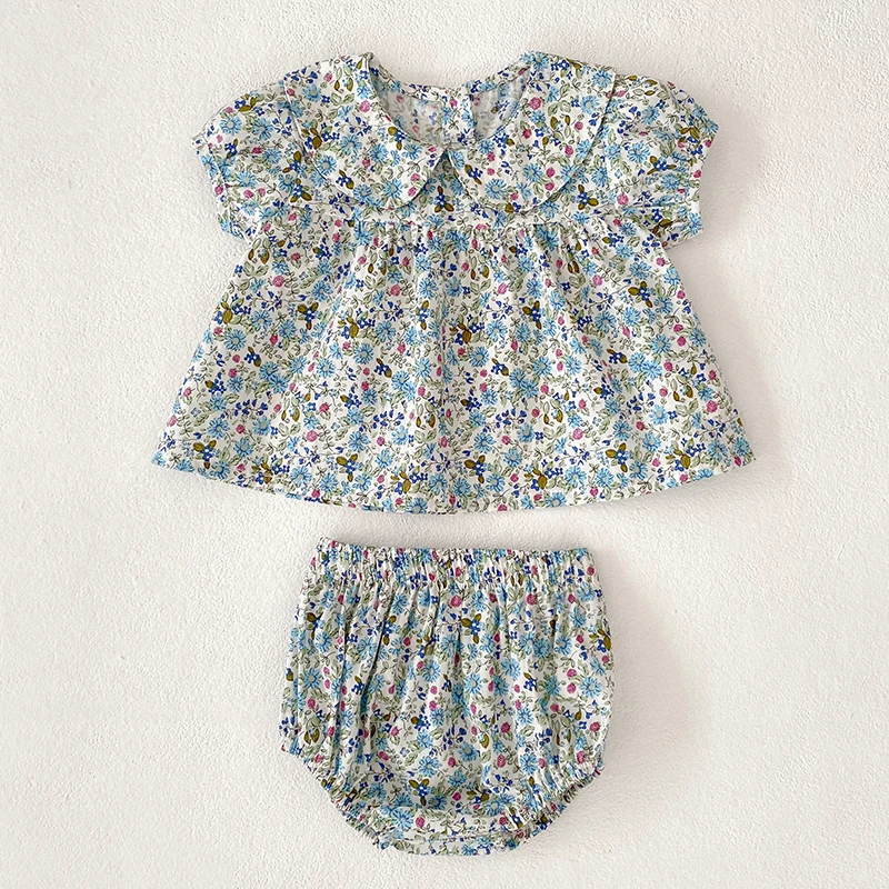 Summer Baby Girls Sets Short Sleeve Pure Flower T-shirt +PP Shorts Suit Sweet Baby Girls Clothes Infant Baby Girls Clothing Suit