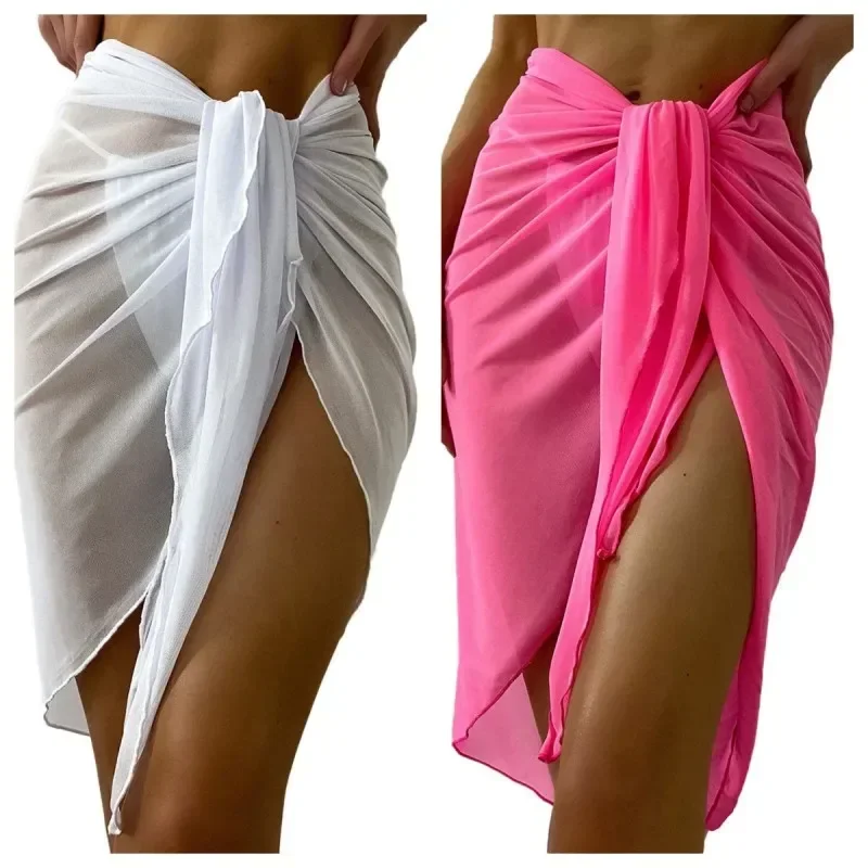 Summer Beach Dress Wrap Sheer Wrap Knot Waist Swimsuit Cover Up Skirt Bikini Wraps Scarf Swimwear Cover Ups Women Bikini Shawls