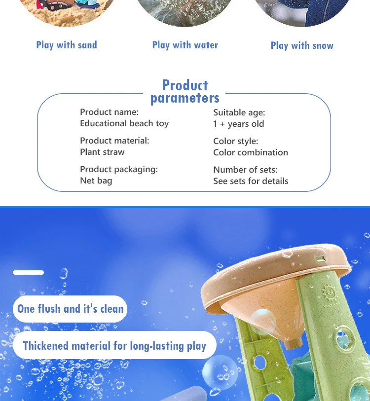 【Safe and non-toxic】Our beach toy set is safe and non-toxic, no peculiar smell, not easy to accumulate bacteria, not easy to mold, users can rest assured.