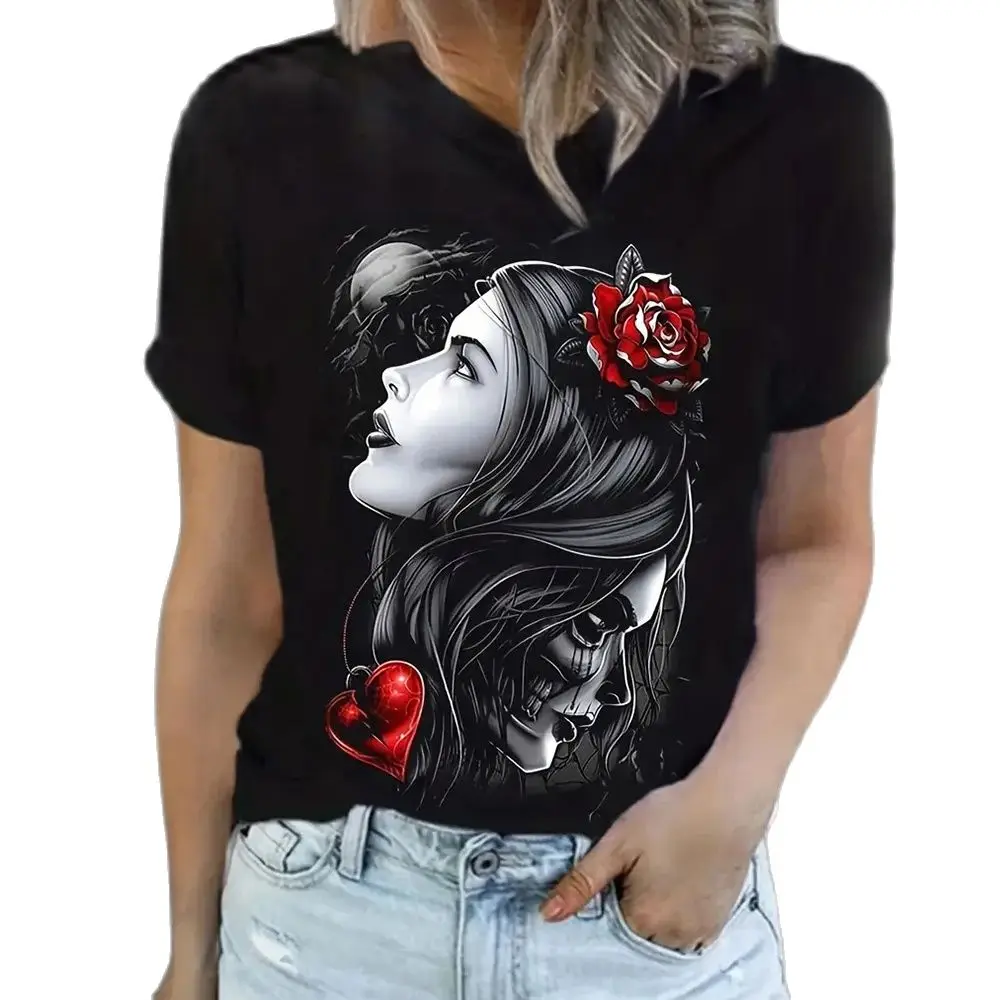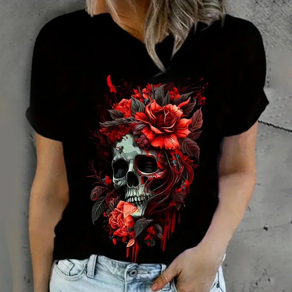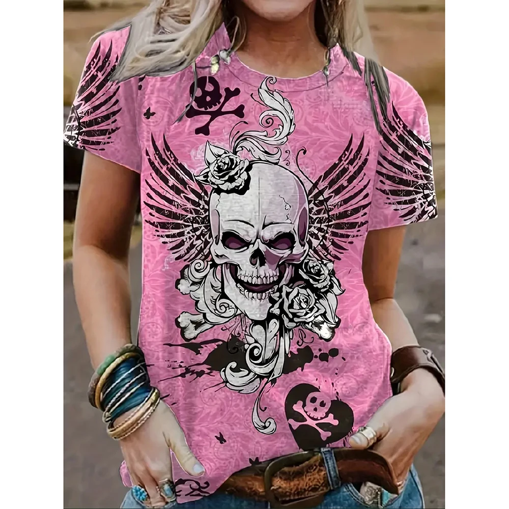 Summer Fashion Short Sleeve Tops Casual 3d Skull Printed T-shirts Female Clothing O-Neck Streetwear Tees & Blouses Oversized