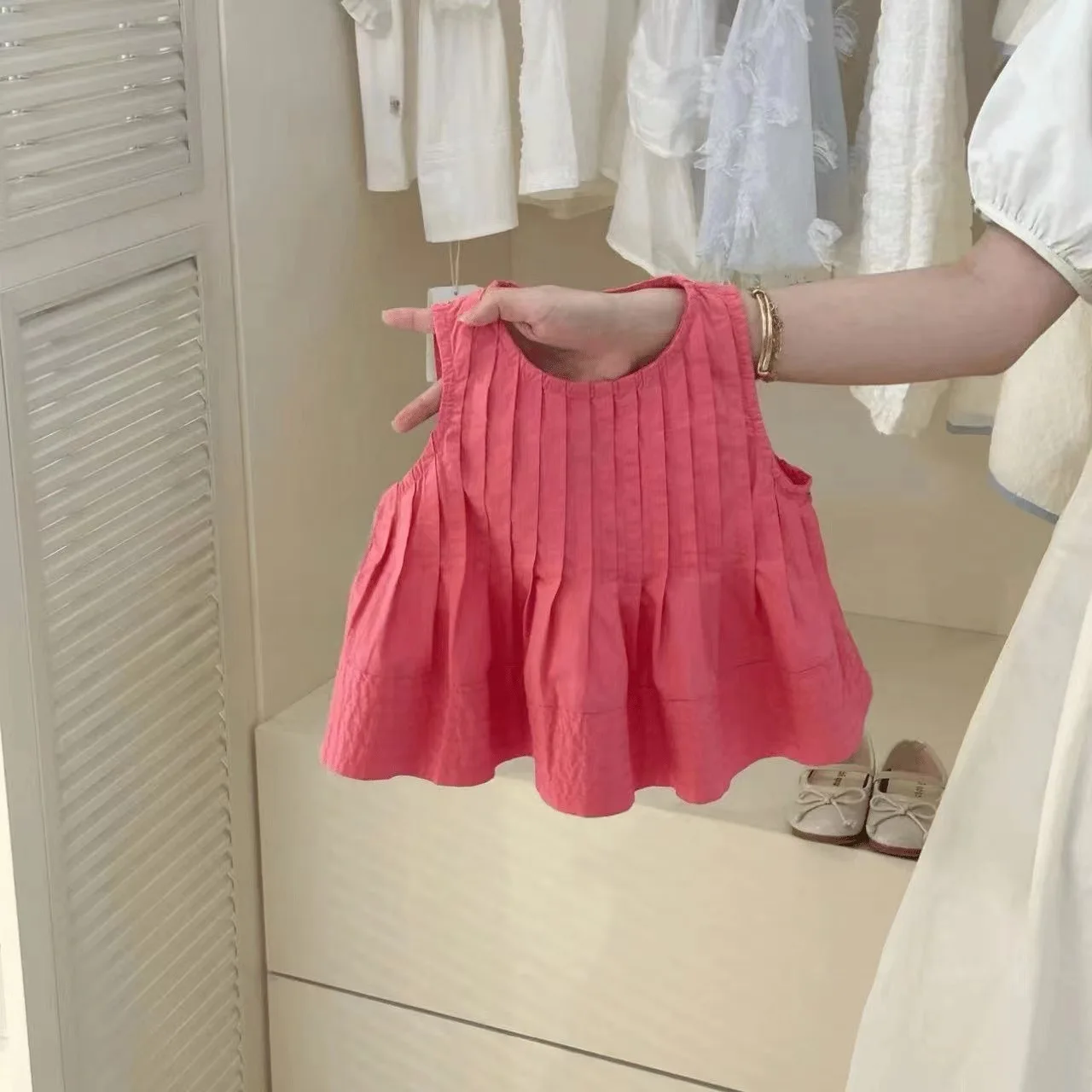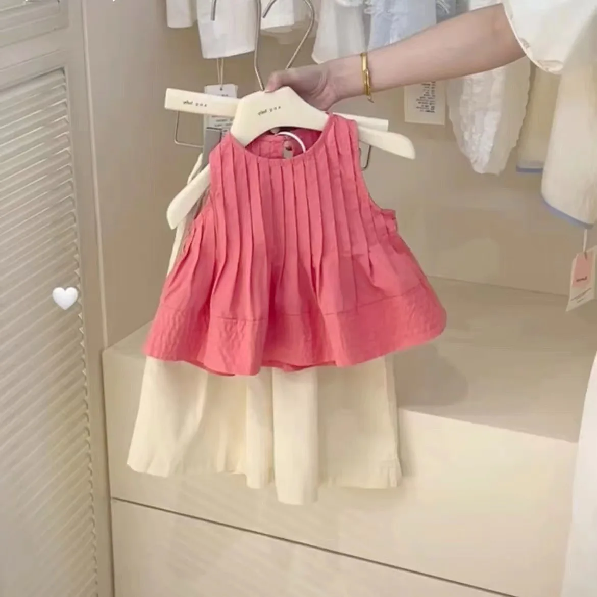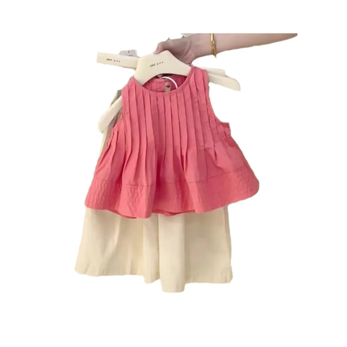 Summer Korean Toddler Girls 2PCS Clothes Set Cotton Solid Ruched Vest Outfits Elastic Waist Wide Leg Pant Infant Baby Girl Suits