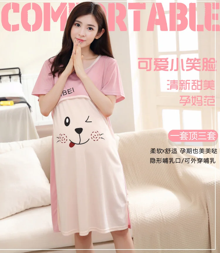 Summer Maternity Breastfeed Nursing Nightgowns Room Wear Nightie Mothers Nightwear Breast Feeding Clothes Pregnancy Nightdress