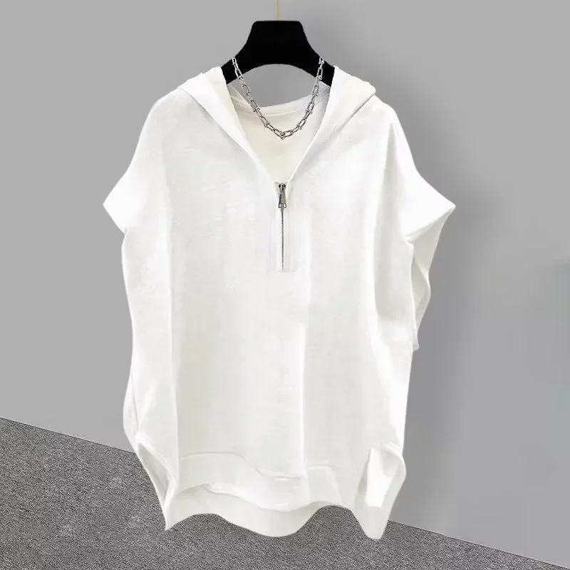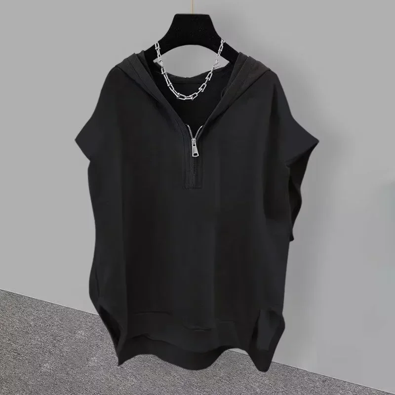 Summer Men’s Zip up Sleeveless Hooded T-shirt 2024 New Korean Fashion Tank Tops Y2K Streetwear Casual Vests Hip Hop Tee Shirts
