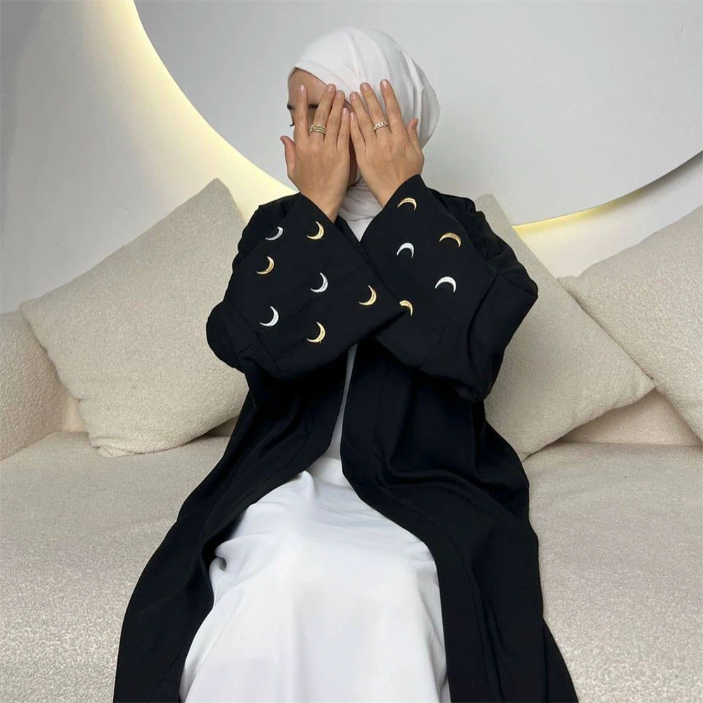 Summer Moon Embroidered Abaya Kimono Dubai Luxury 2024 Islam Muslim Kaftan Modest Dress Kebaya Damen Caftan Abayas For Women