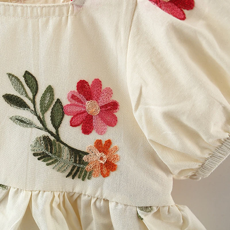 Summer New Girl Bubble Sleeves Embroidered Flower Fashion Trend Girl Baby Dress Lightweight Sweet Princess Dress