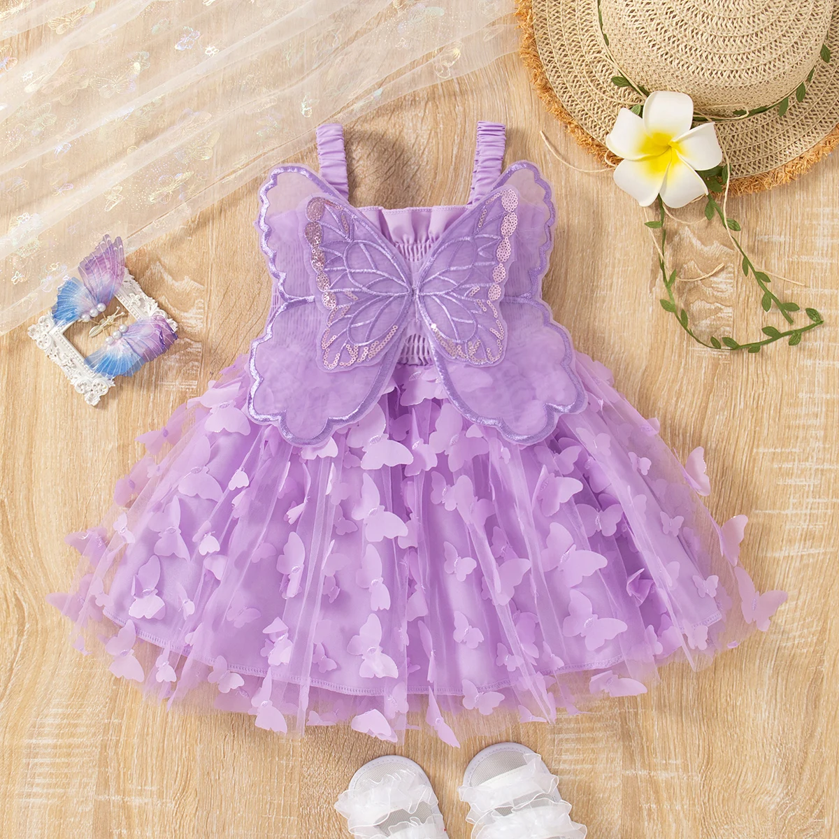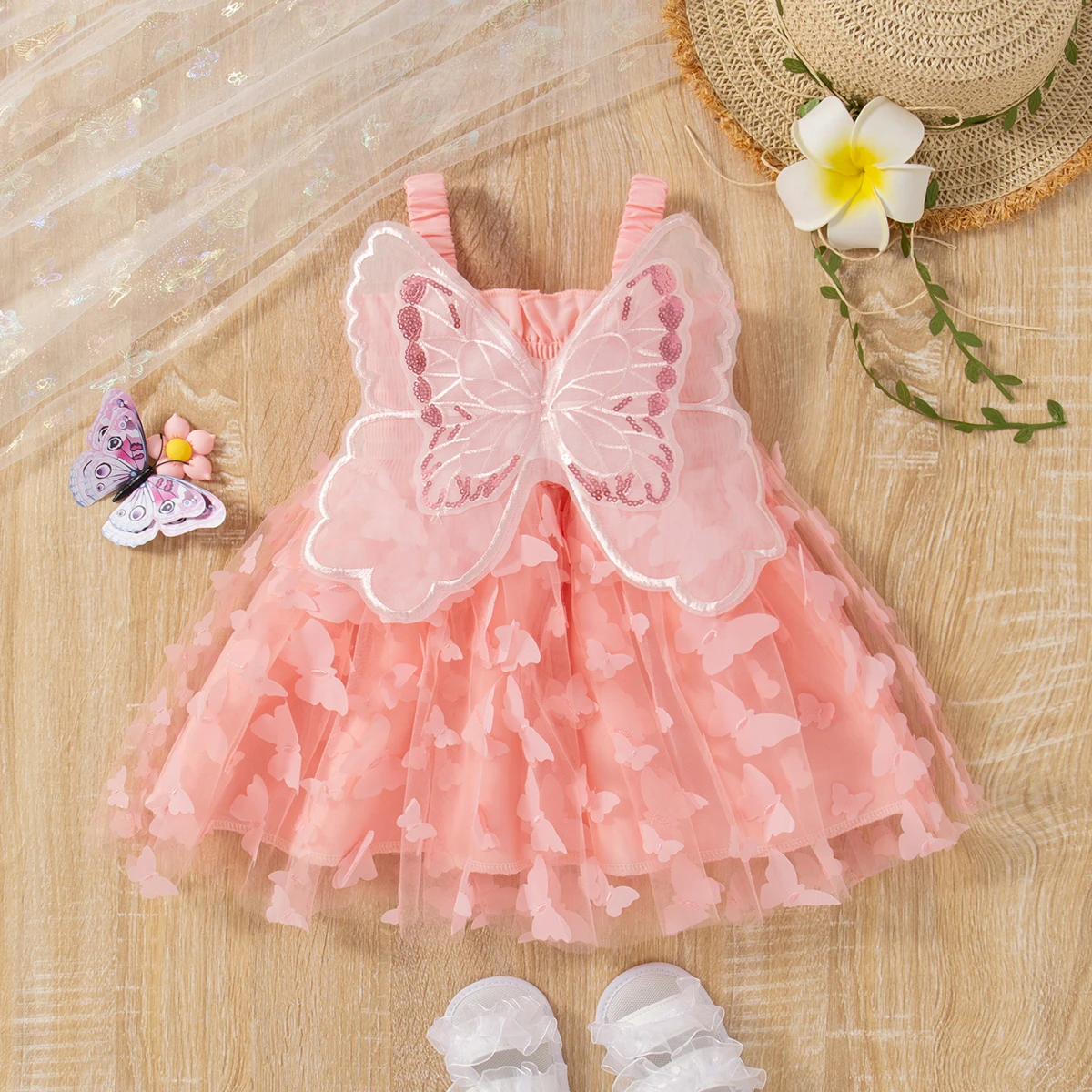 Summer Outfit For Baby Girl Sweet Butterfly Wings Fairy Dress For Baby Girl Birthday Party Dress 9 Months -3 Years Old