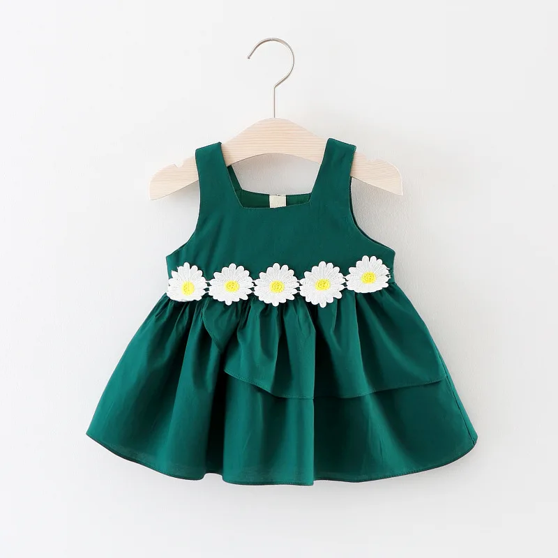 Summer Outfits Toddler Girl Clothes Baby Dresses Korean Cute Flowers Sleeveless Cotton Red Luxury Birthday Princess Dress BC1676