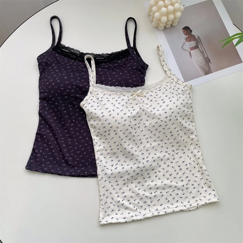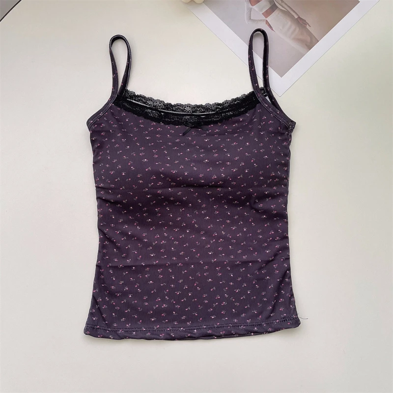 3 reviews for Summer Print Crop Tops for Women Bow Lace Camisole Sexy Backless Vest with Padded Basic Tank Top Bm Style Camis Y2k Streetwear