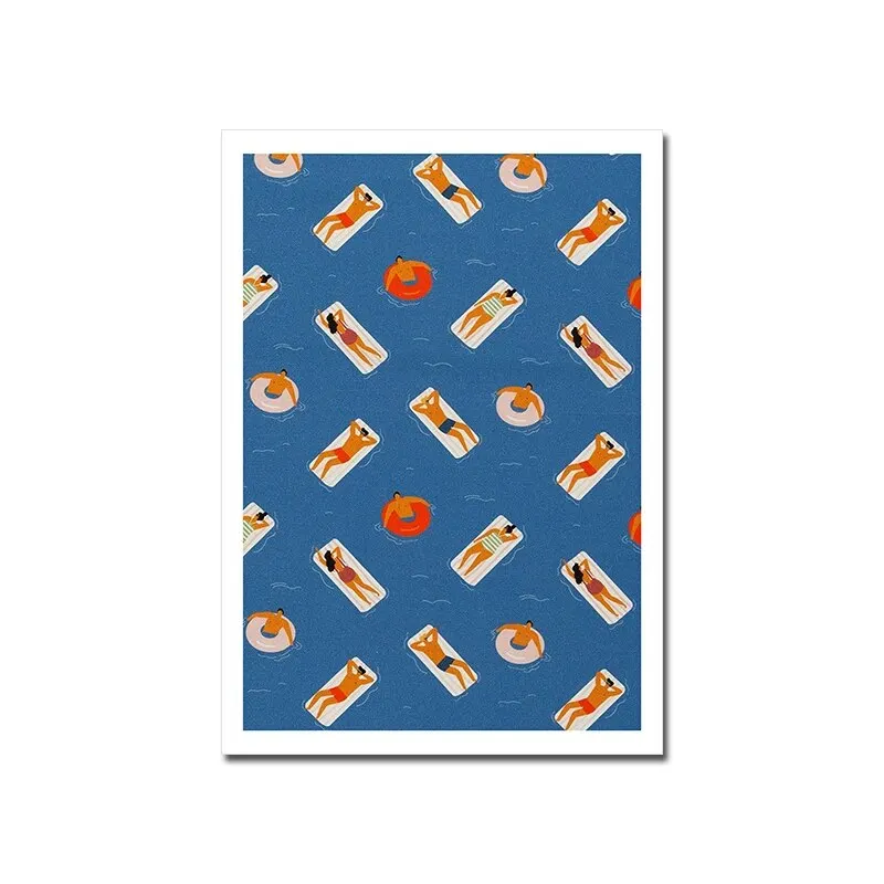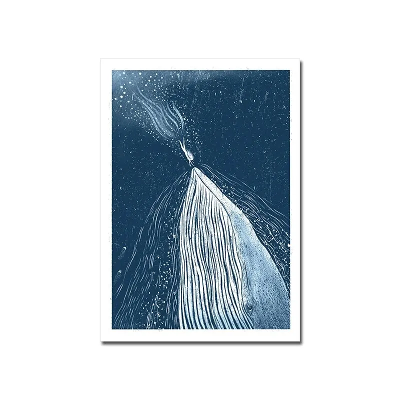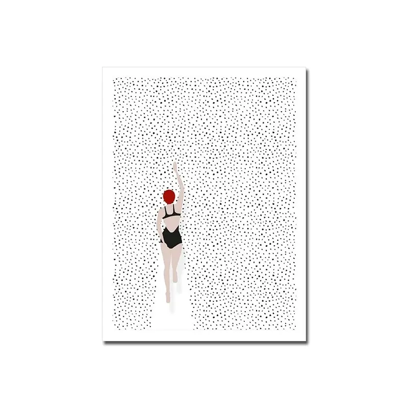 Summer Sea Swim Poster, Open-Water Pool Canvas Painting, Abstract Diving Whale Art Print, Minimalist Wall Picture