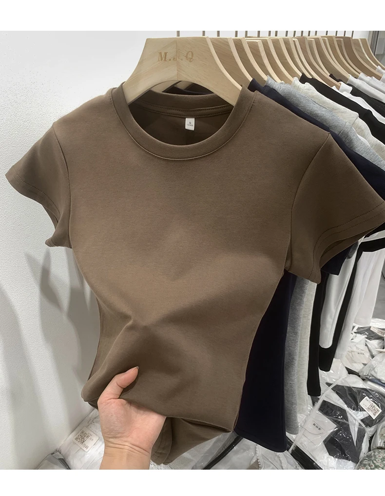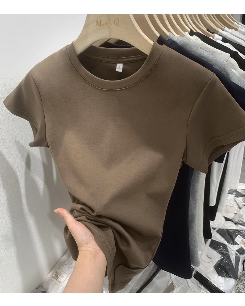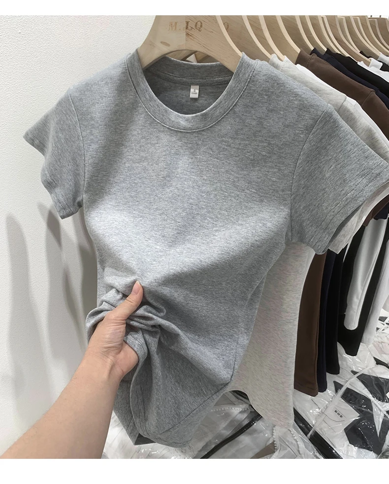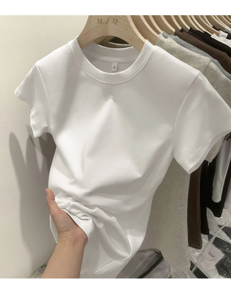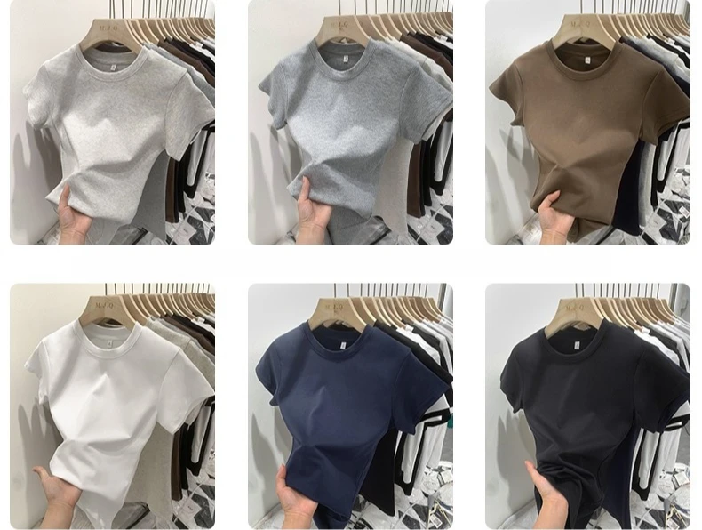 5 reviews for Summer Slim Fit O-Neck Short Sleeve Cotton T-shirts Women’s Fashion New Solid Color Top Female Casual Streetwear Basics Tees