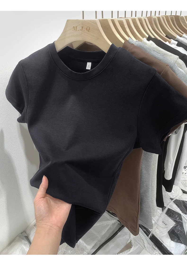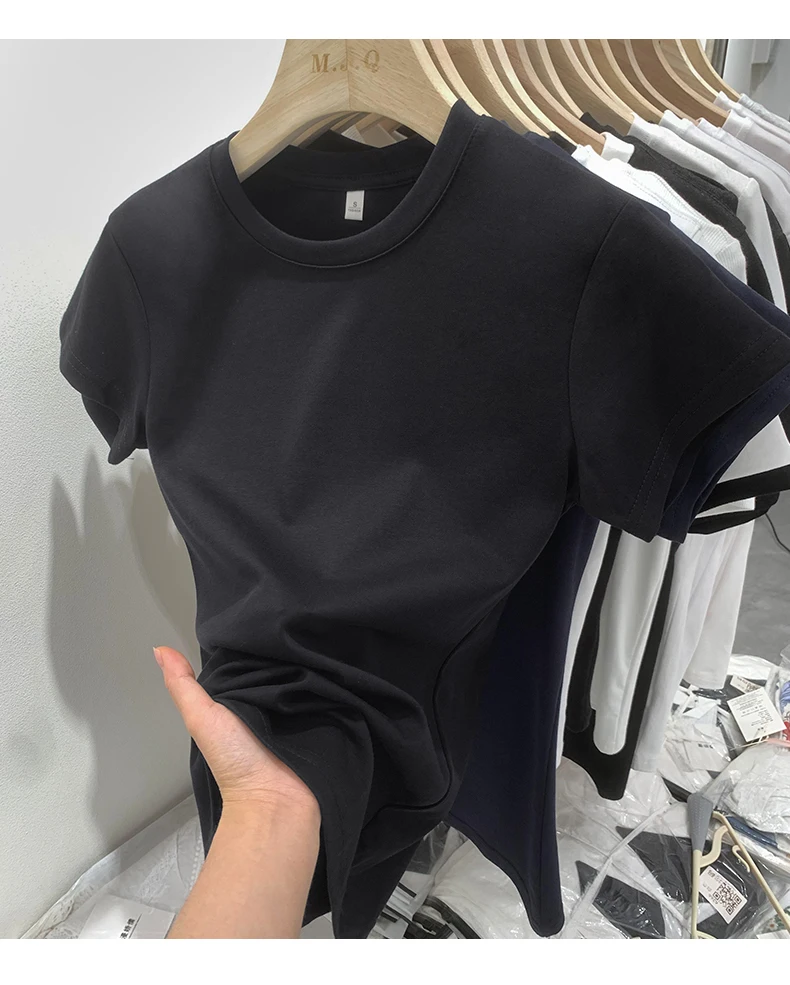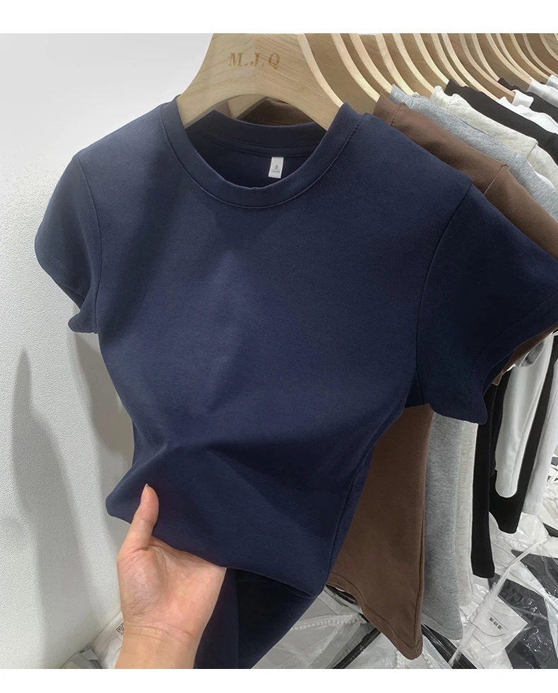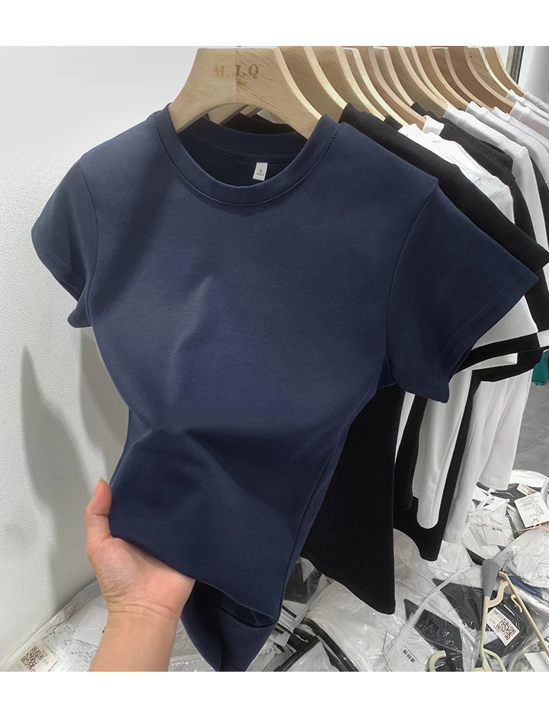 5 reviews for Summer Slim Fit O-Neck Short Sleeve Cotton T-shirts Women’s Fashion New Solid Color Top Female Casual Streetwear Basics Tees