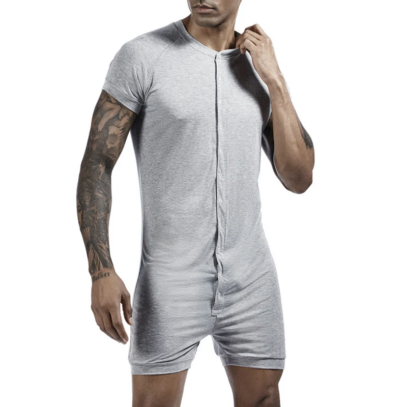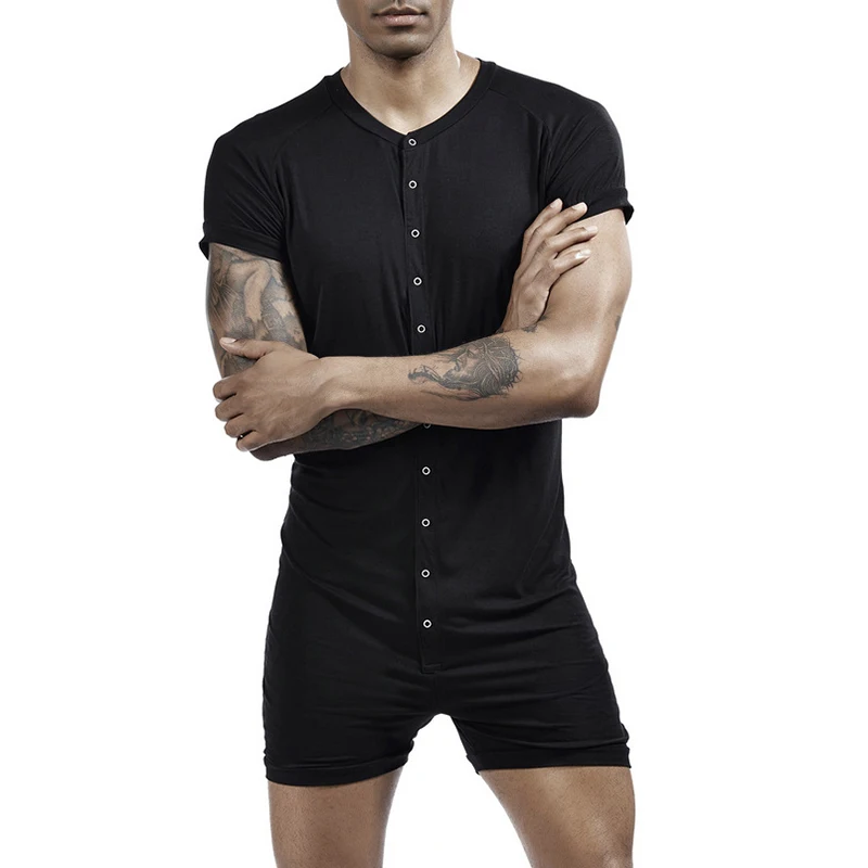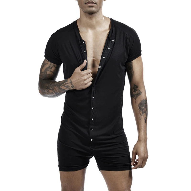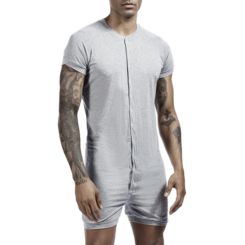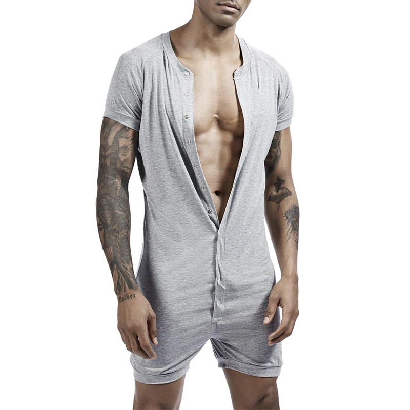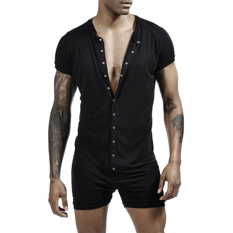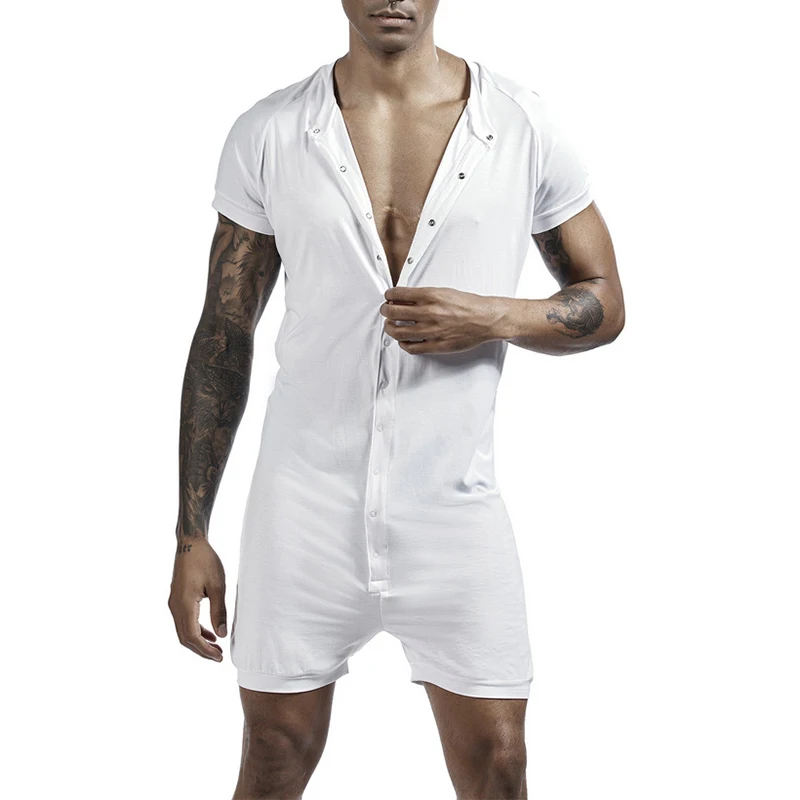 Summer Soft Breathable Jumpsuits Men Pajama Sexy Slim Fit Short Sleeve Solid Color Bodysuits For Mens Sleepwear Summer Playsuits