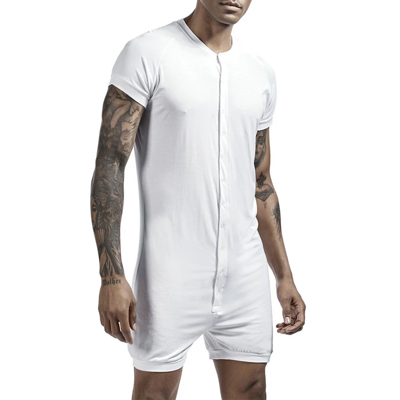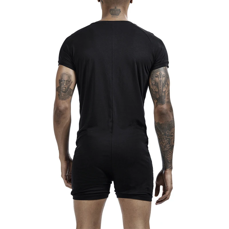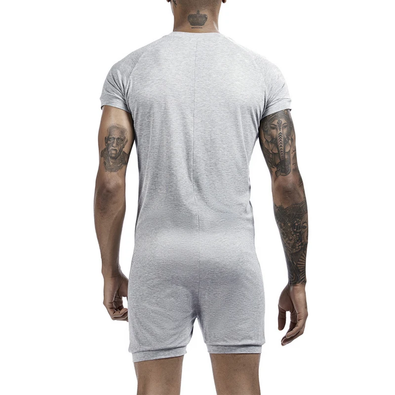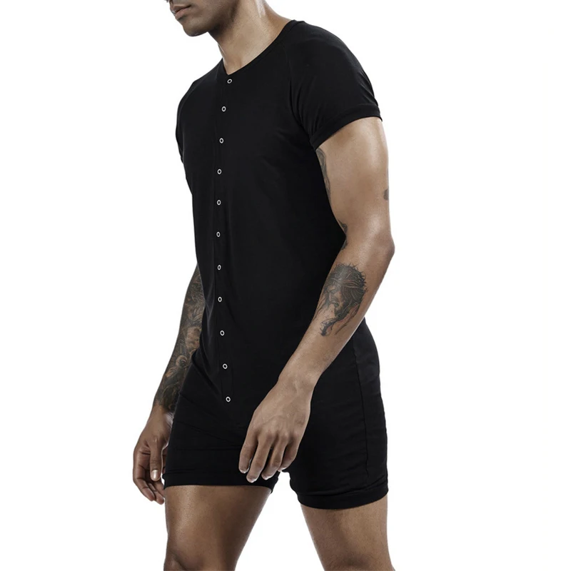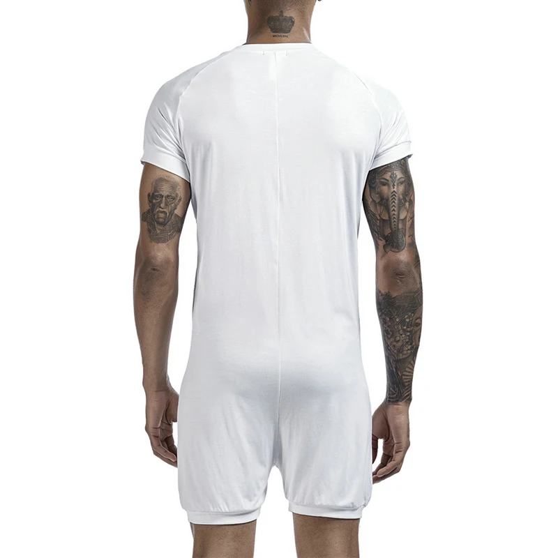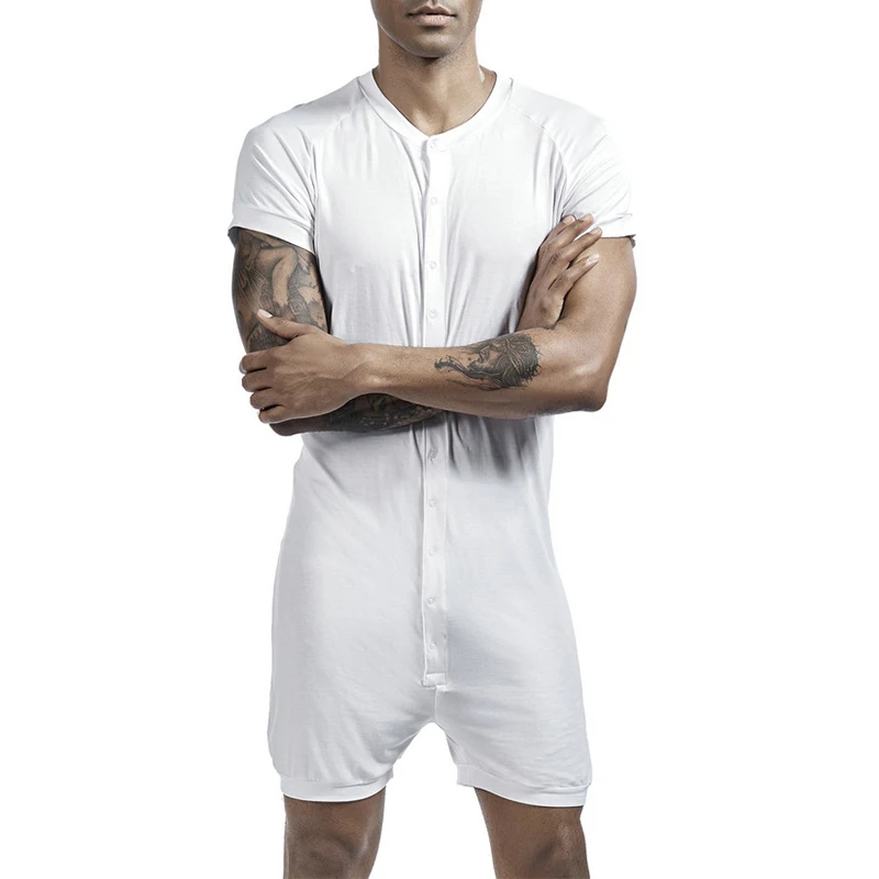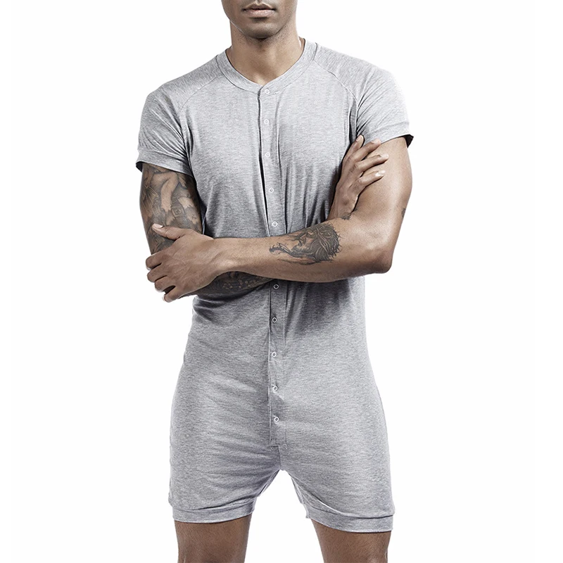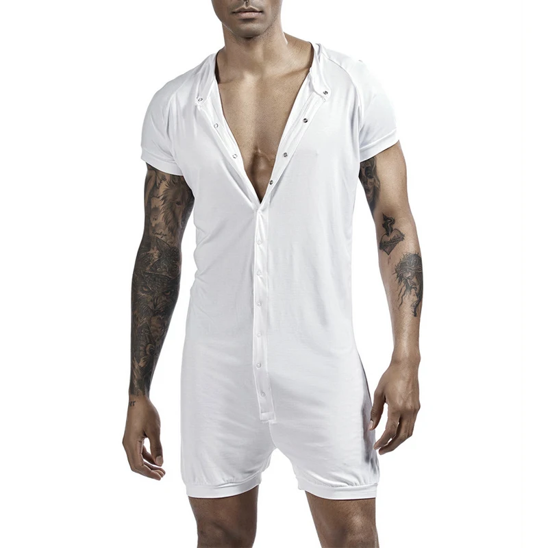 Summer Soft Breathable Jumpsuits Men Pajama Sexy Slim Fit Short Sleeve Solid Color Bodysuits For Mens Sleepwear Summer Playsuits