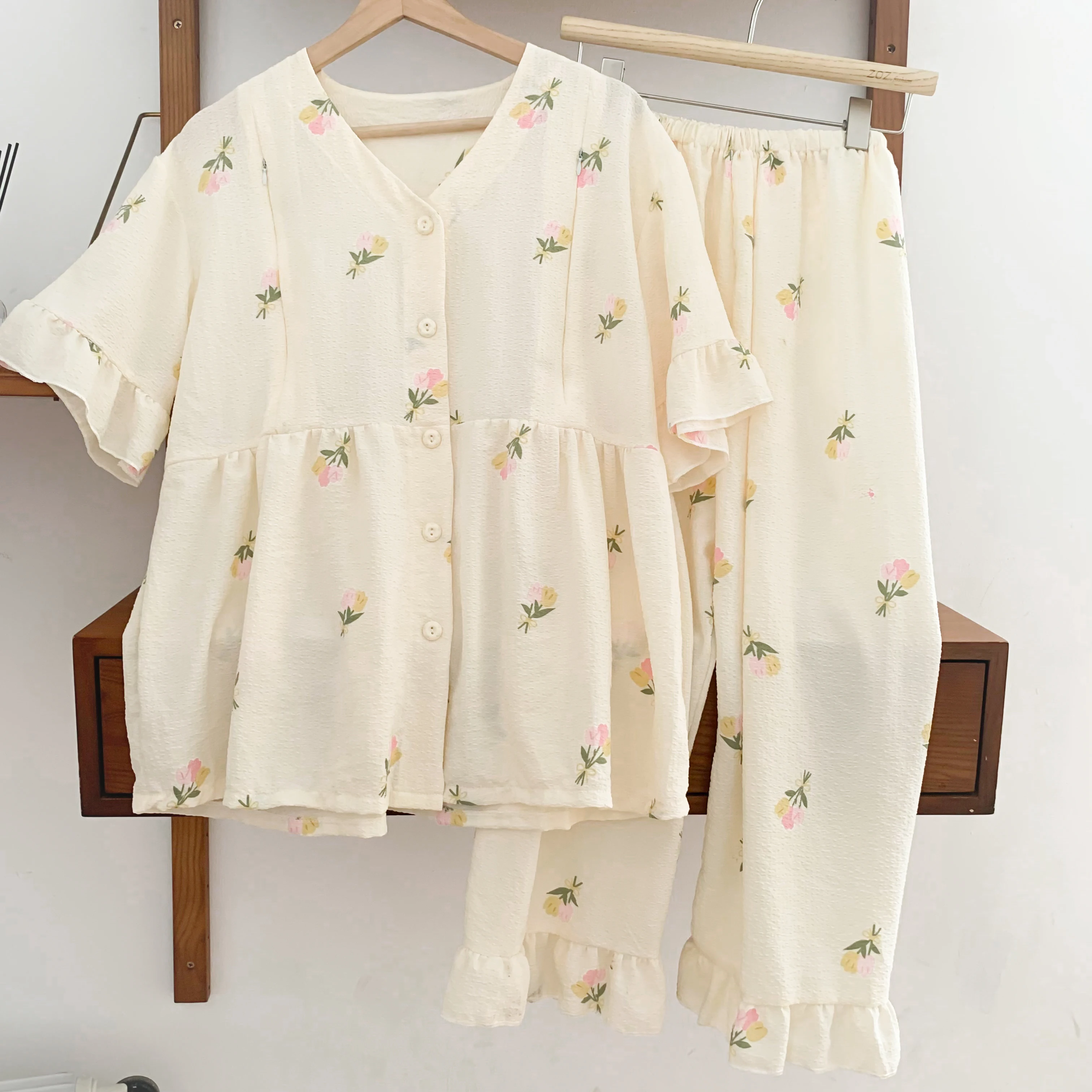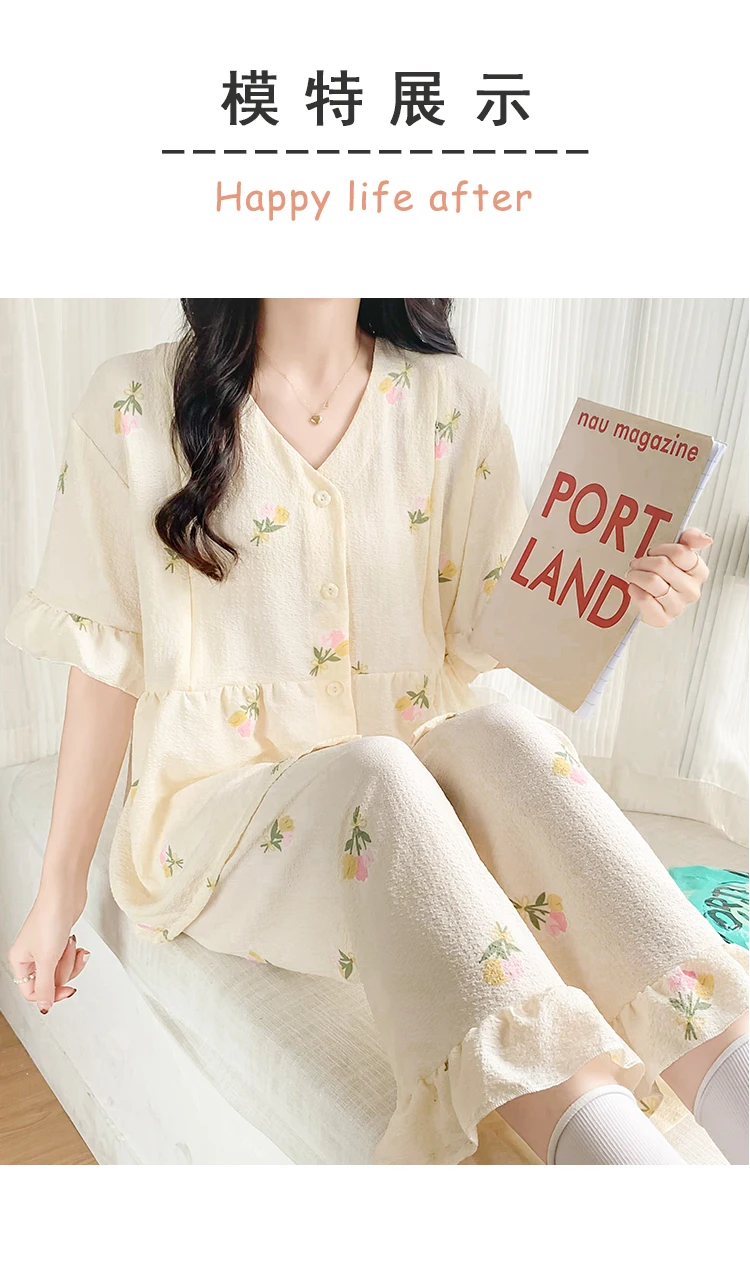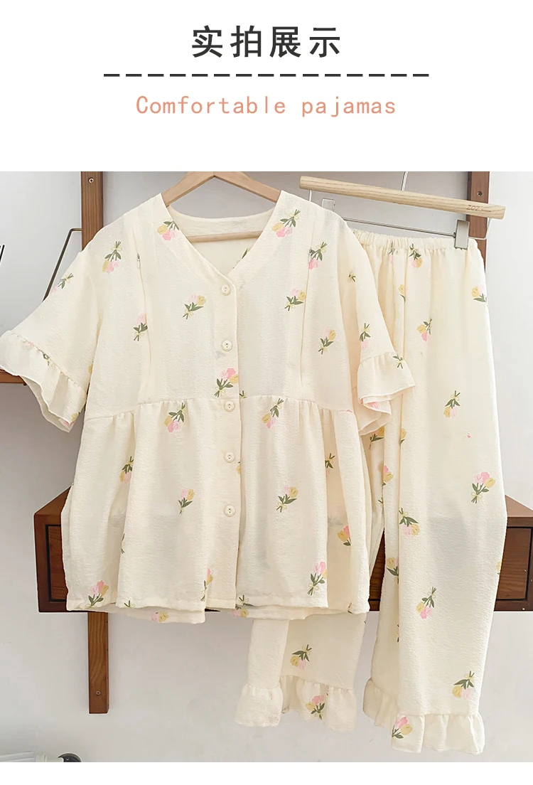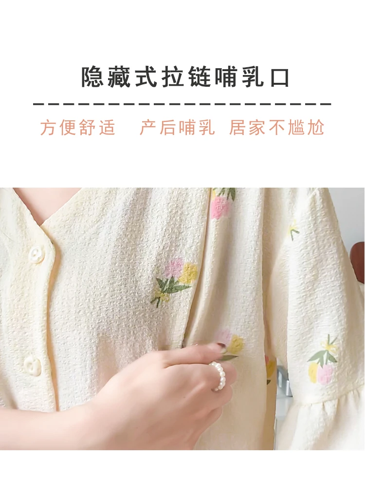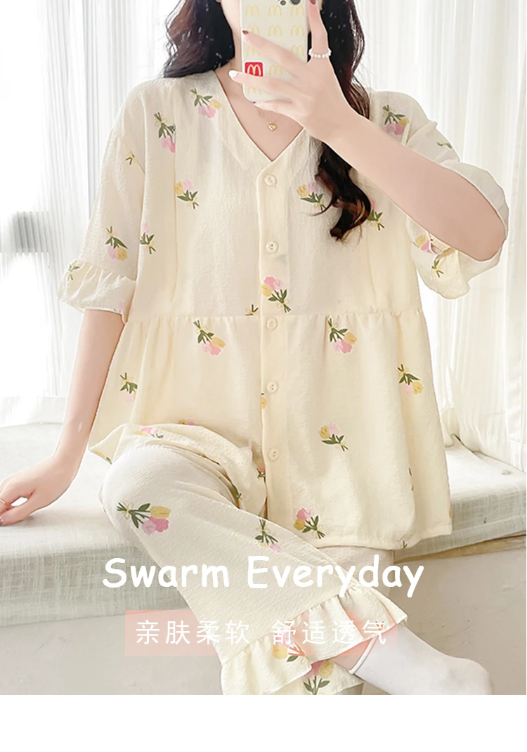 Summer Thin Maternity Nursing Sleepwear Set Loose Breastfeeding Tops Belly Pants Pajamas Pregnancy Short Sleeve Home Lounge Wear