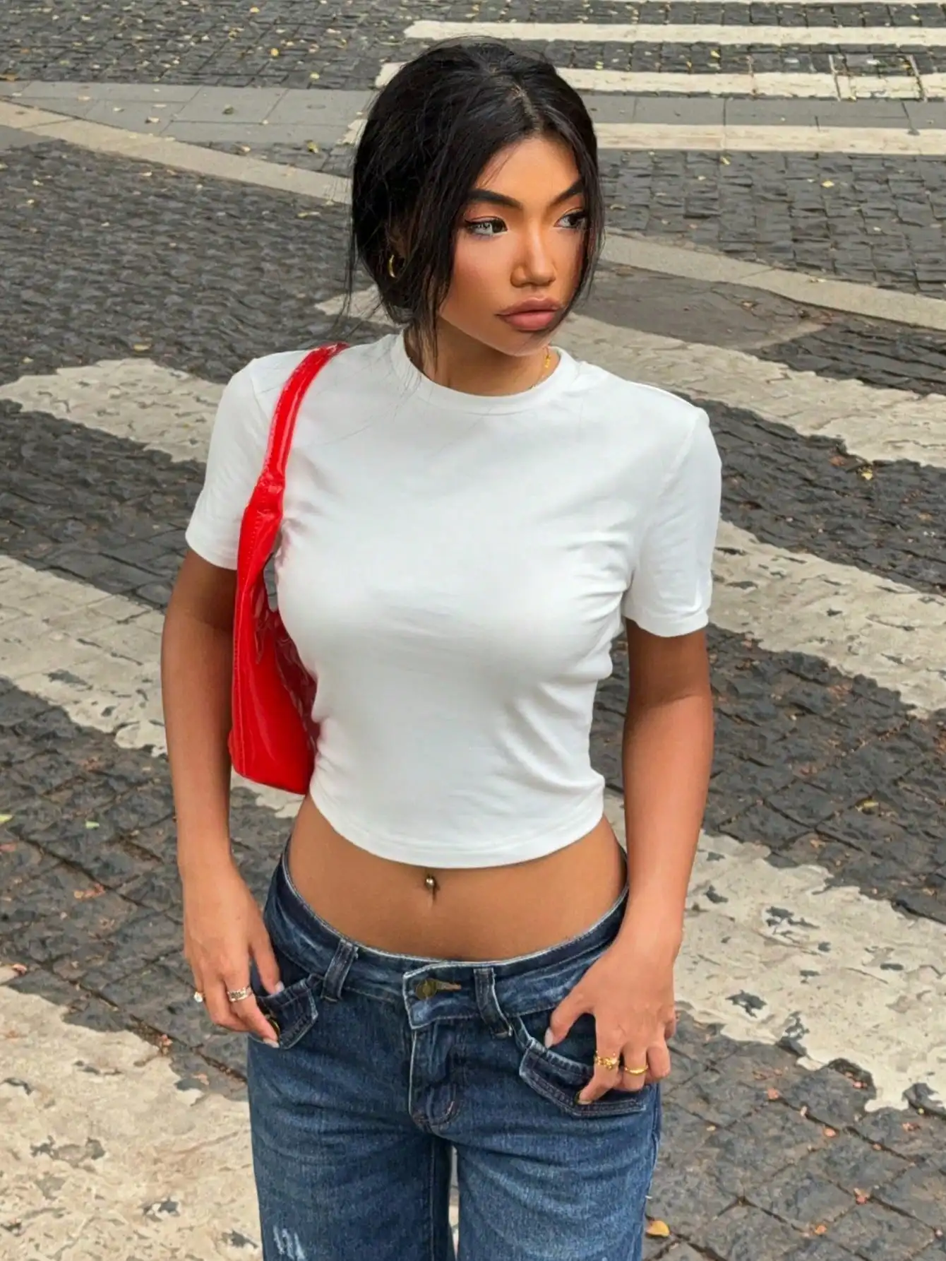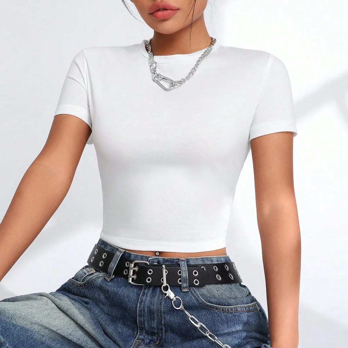 summer Women short Sleeve T Shirt Solid Slim Fit Casual Shirts Female Pullovers Basic Tee Clothes Street wear Crop Tops