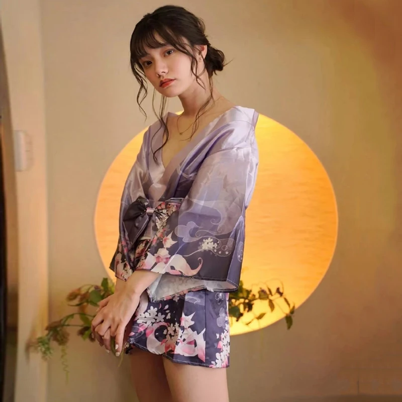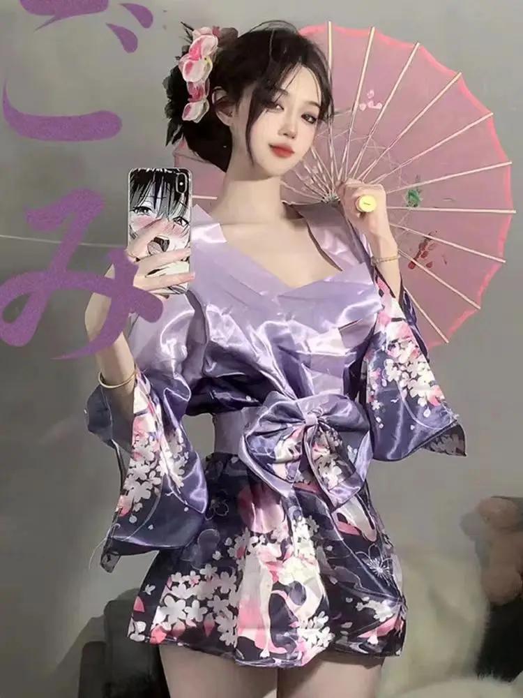 Super Sexy Purple Japanese Kimono Pajamas Bathrobe Yukata Cardigan Lingerie Temptation Anime Cosplay Halloween Costumes Women