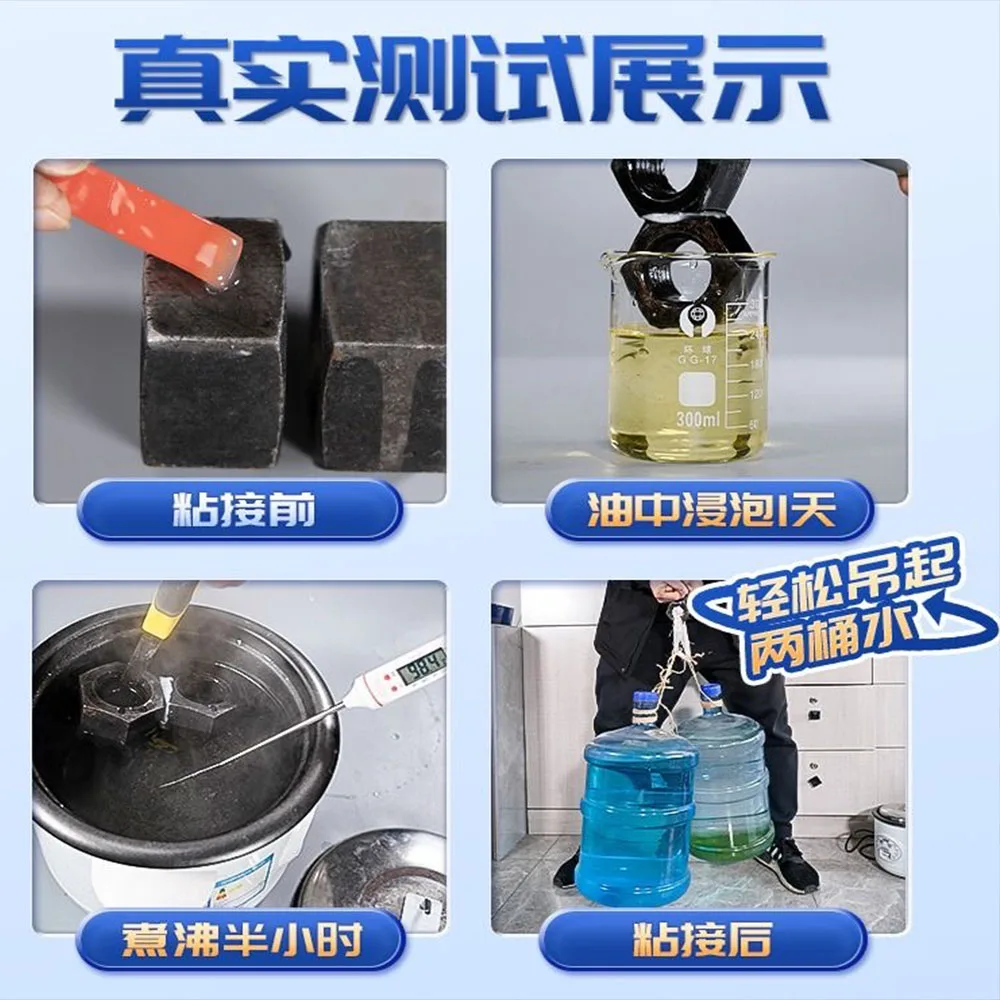 A professional-grade, two-part epoxy adhesive designed for heavy-duty repairs on metal, plastic, ceramic, and wood surfaces. Ideal for fixing casting defects, cracks, abrasions, and fractures in industrial equipment, automotive parts, and household items. With high shear strength, temperature resistance, and quick curing, it delivers reliable, long-lasting repairs without welding.