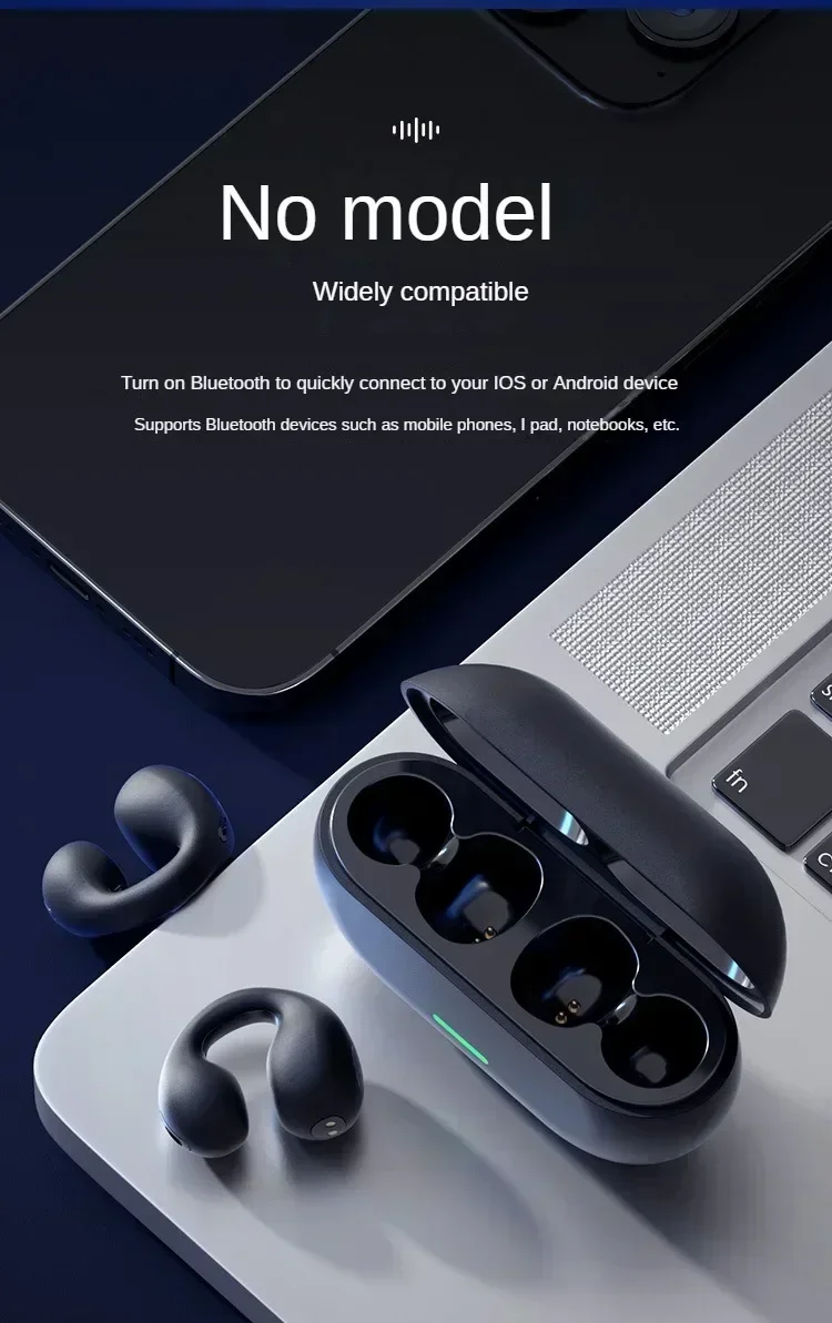 T75 Wireless Bluetooth 5.3 Bone Conduction Headphones Clip Ear Music Noise Canceling Headset HD Call Sports Gaming Earphone