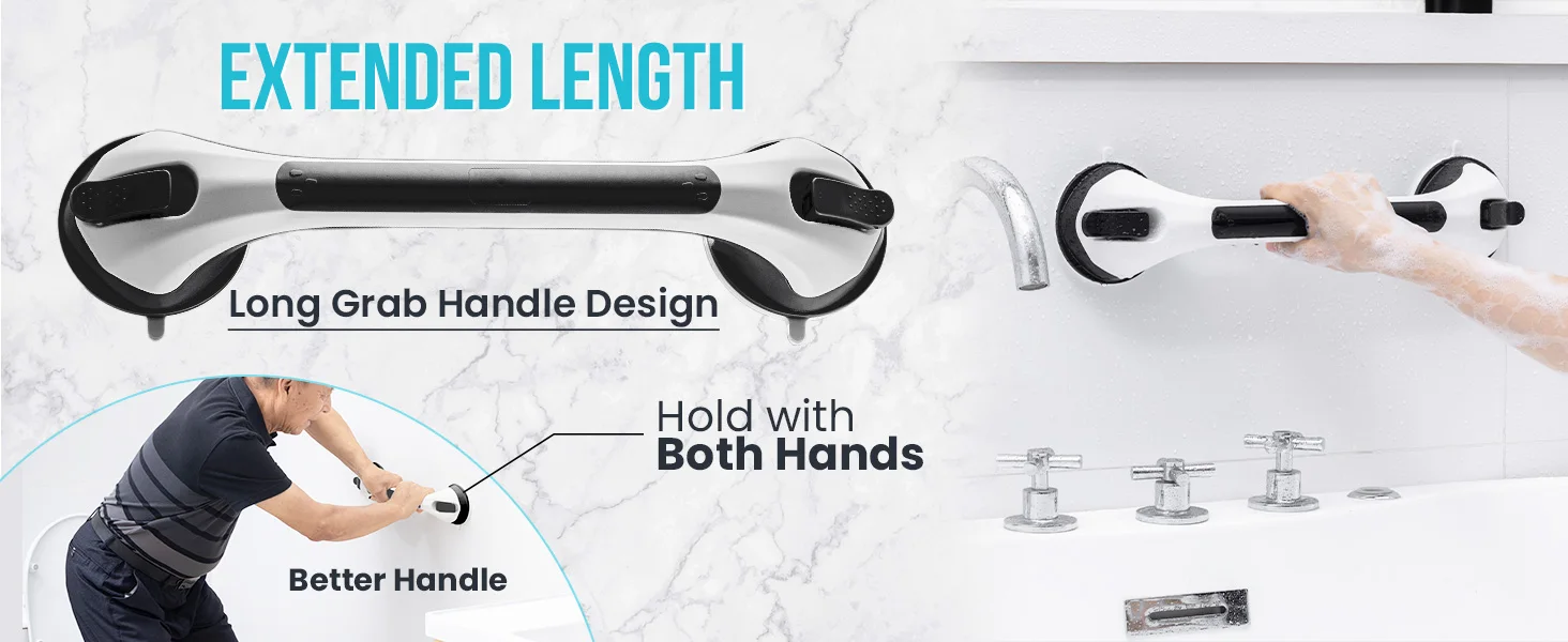 Matters need Attention: For the safety of the seniors and elderly, please pay attention that the suction grab bars for shower ONLY sticks on smooth and non-porous AIRTIGHT walls which are NOT air-permeable like metal, glass, tile, marble, stainless steel and acrylic but does NOT apply on uneven tile, unfinished marble, wallpaper, dry wall, porous wall, etc. Please don't put all the body on the shower grip