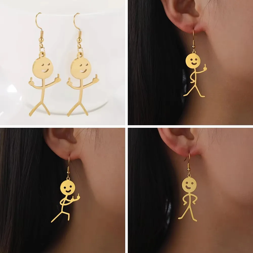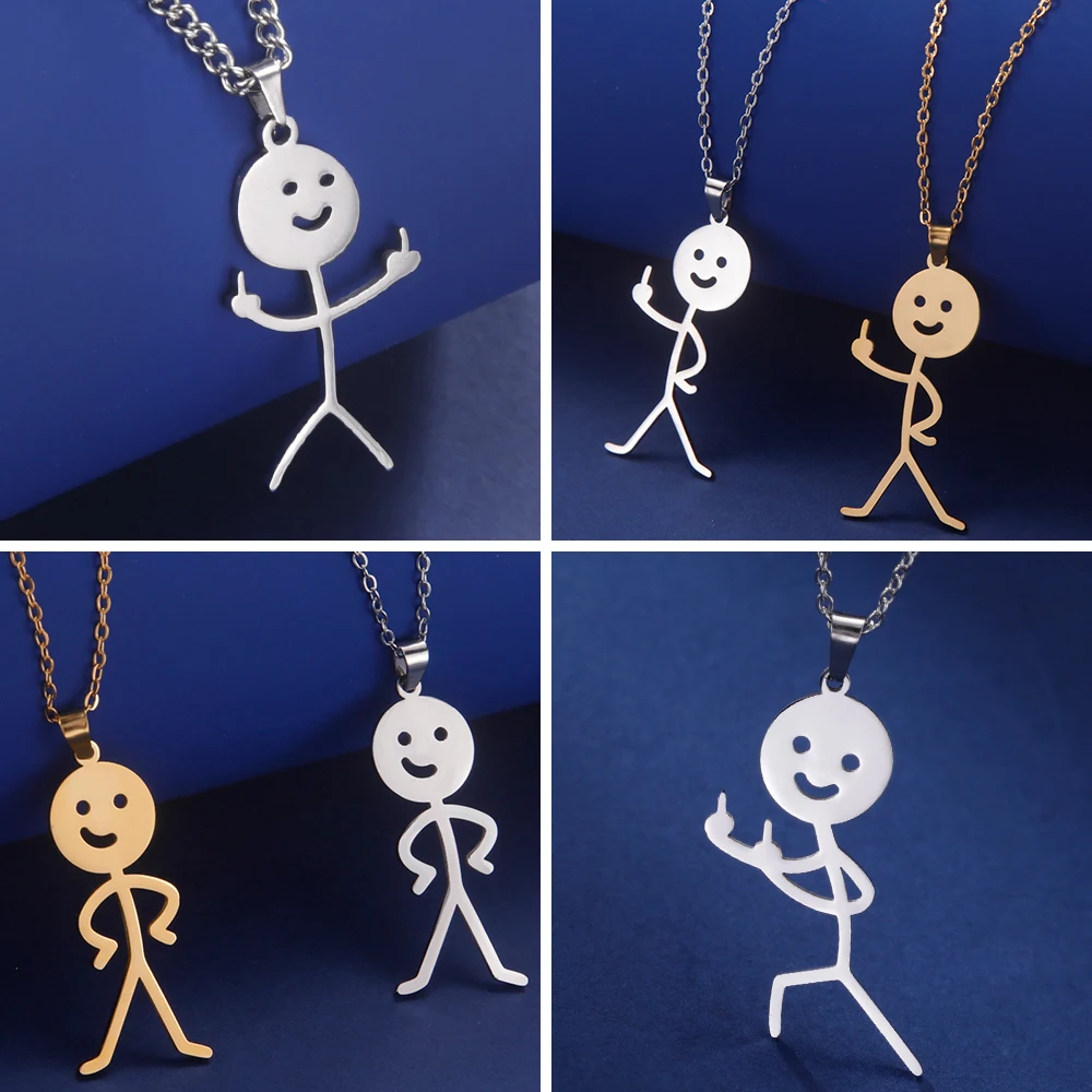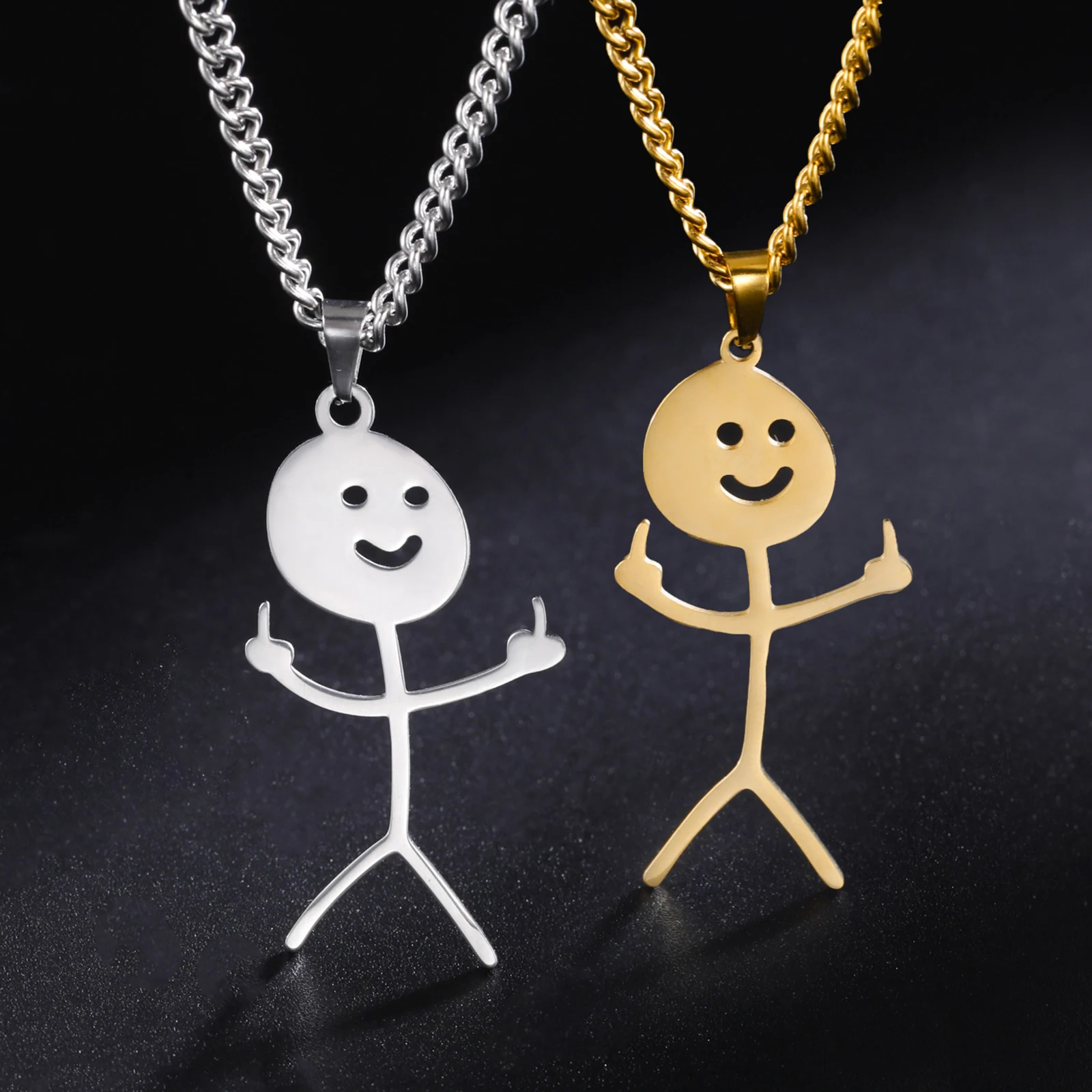 Teamer Hip Hop Middle Finger Stickman Necklace Rock Punk Funny Doodle Pendant Necklace for Women Men Trend Jewelry Gift