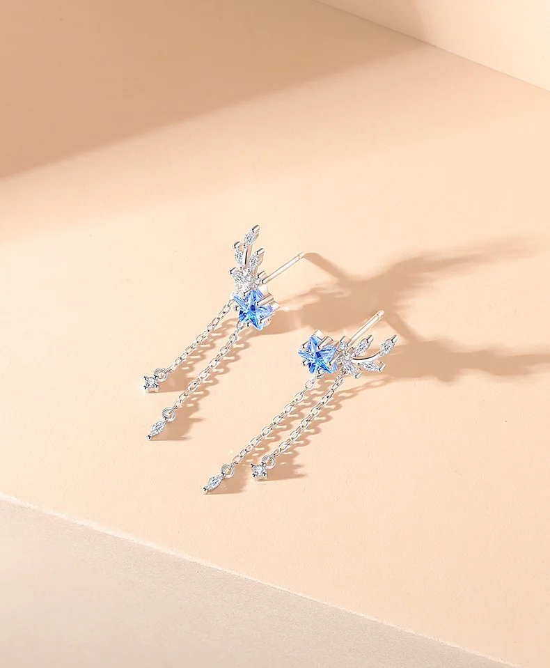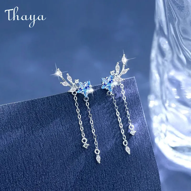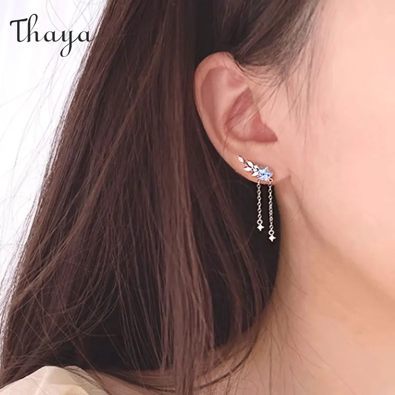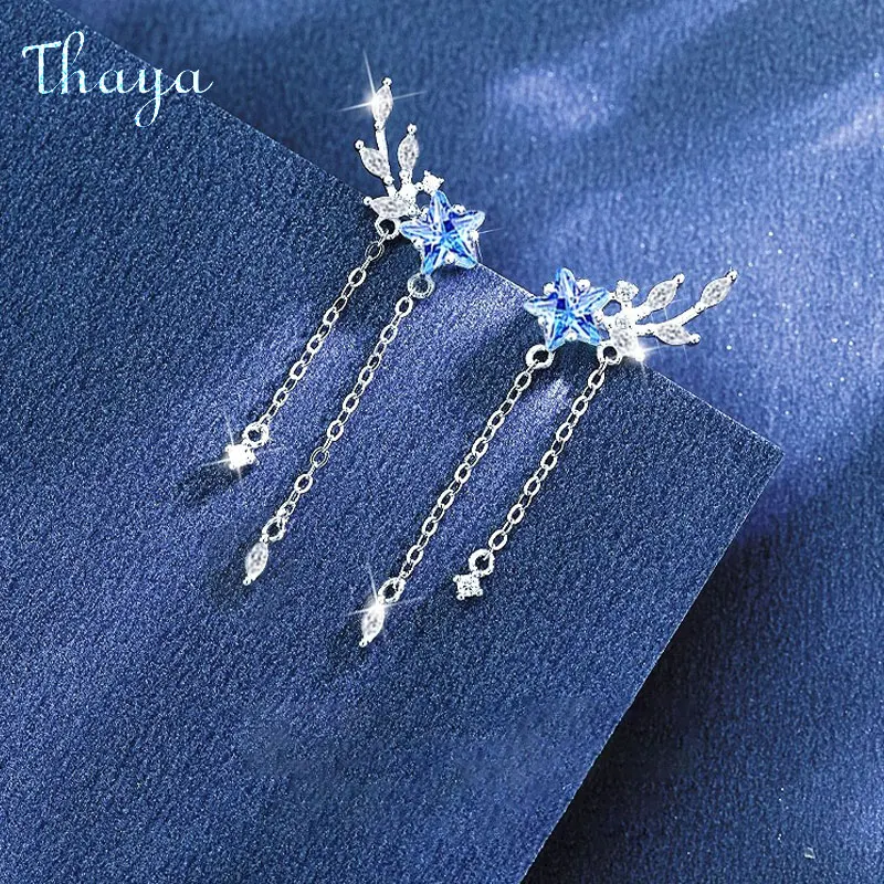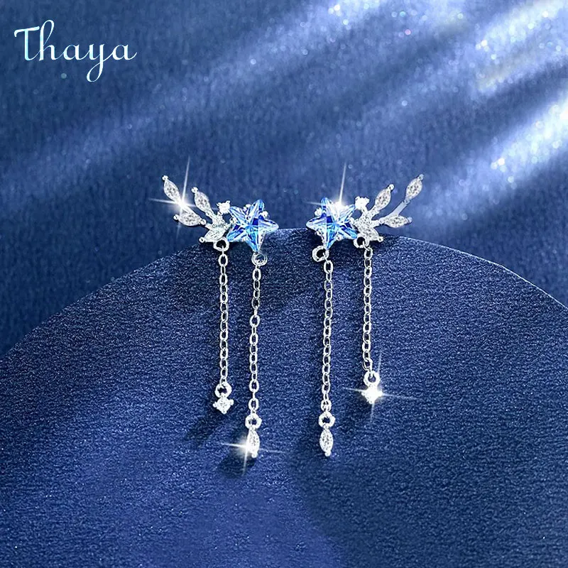 Thaya S925 Sterling Silver Women Earrings Blue Crystal Pendant Earring Dangle for Women Eleagnt Female Fine Jewelry Girl Gifts