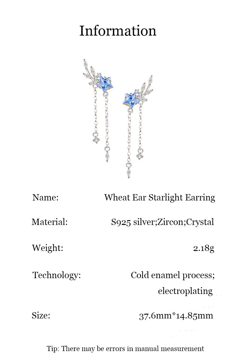Material: S925 silver;Zircon;Crystal