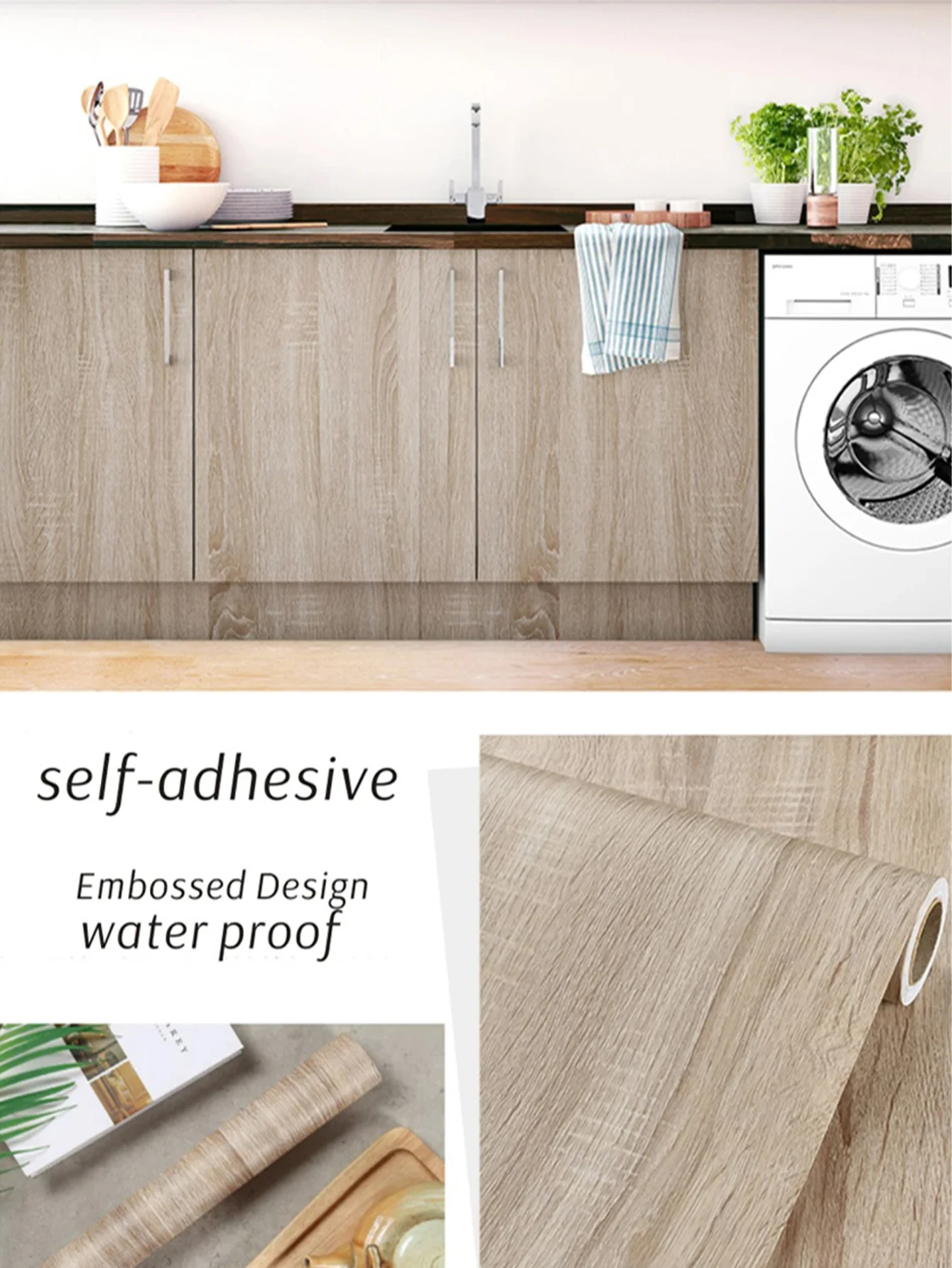 Wood grain contact paper can be used for home, hotel, office, classroom and other places, such as kitchen cabinets, countertops, bathroom, drawers, dressers, desk, table, shelves, doors, vanity, nightstand, backsplash, wardrobe, cupboards, old furniture, bedroom, living room, farmhouse, accent wall, laundry room, crafts, aesthetic room, stairs, floor, school, lockers, Christmas and so on.