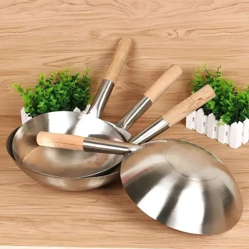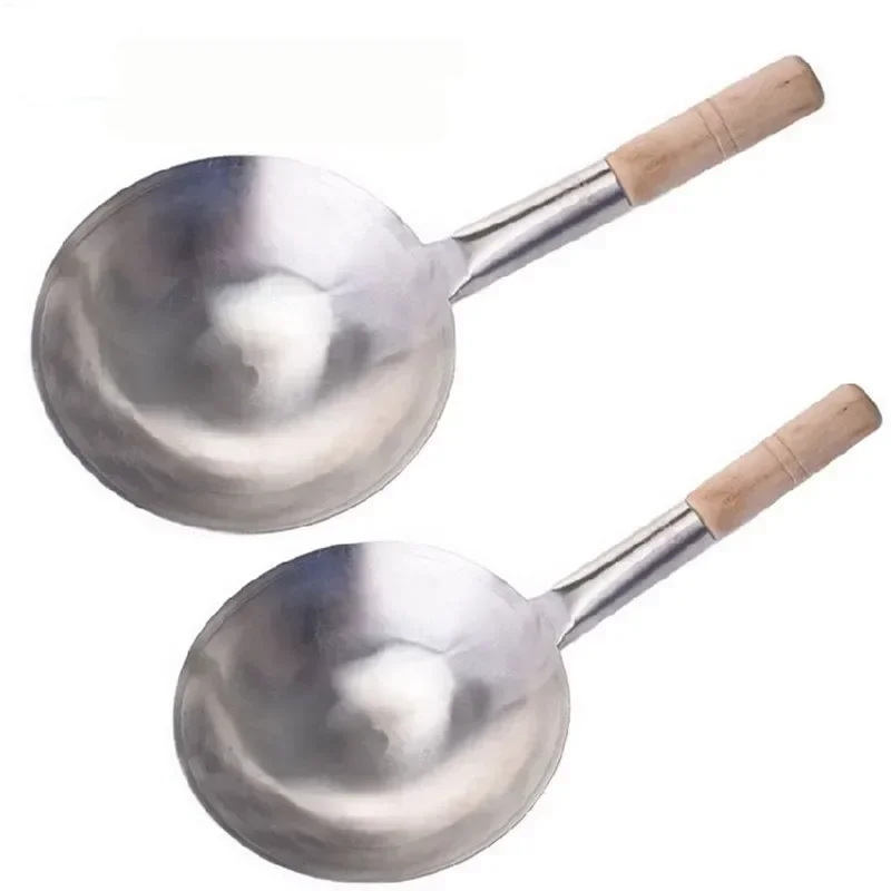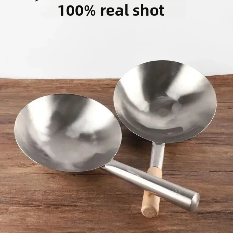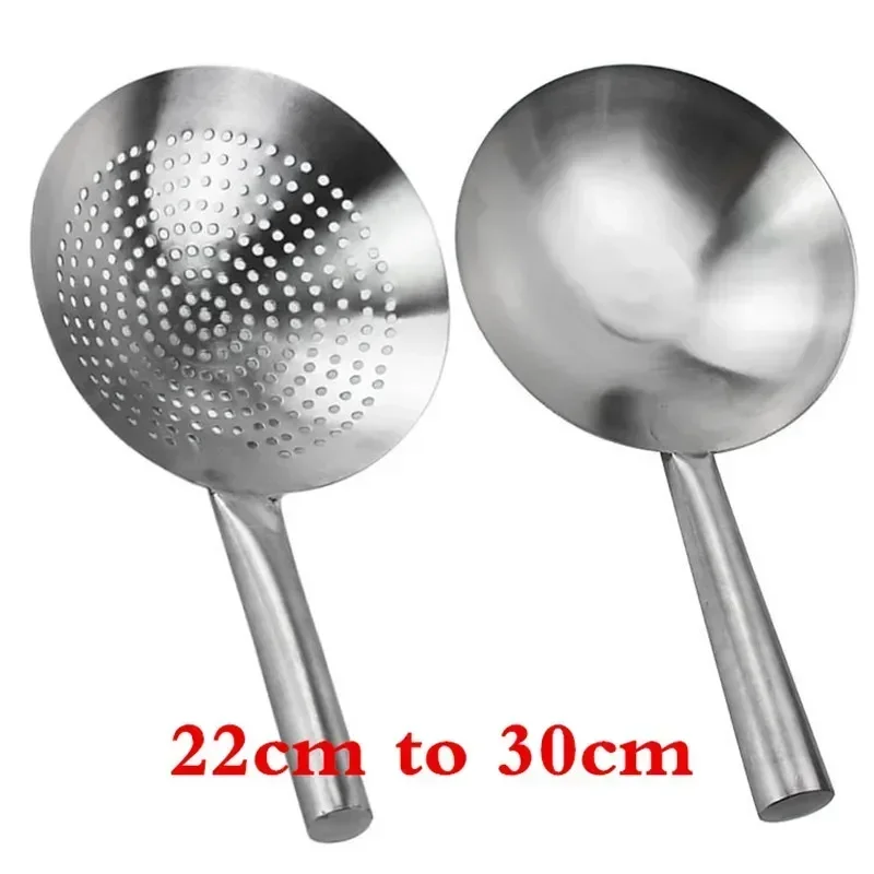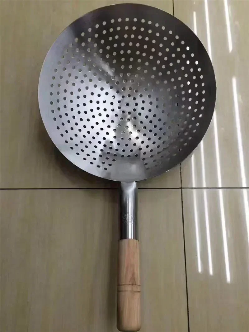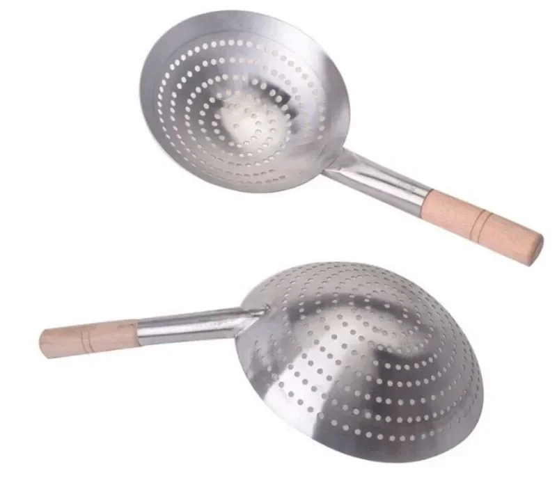Thick Stainless Steel Mesh Strainer Colander wok wooden Handle Cookware Oil Flour Sifter Colander Kitchen Cooking steamer wok
