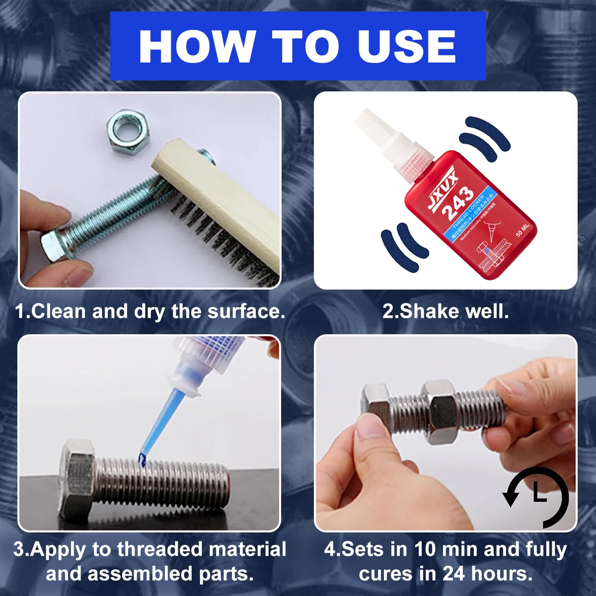 4. This product works better with a thin adhesive layer below 0.05mm. For oversize threads, a large gap can affect the curing speed and strength of the product.
