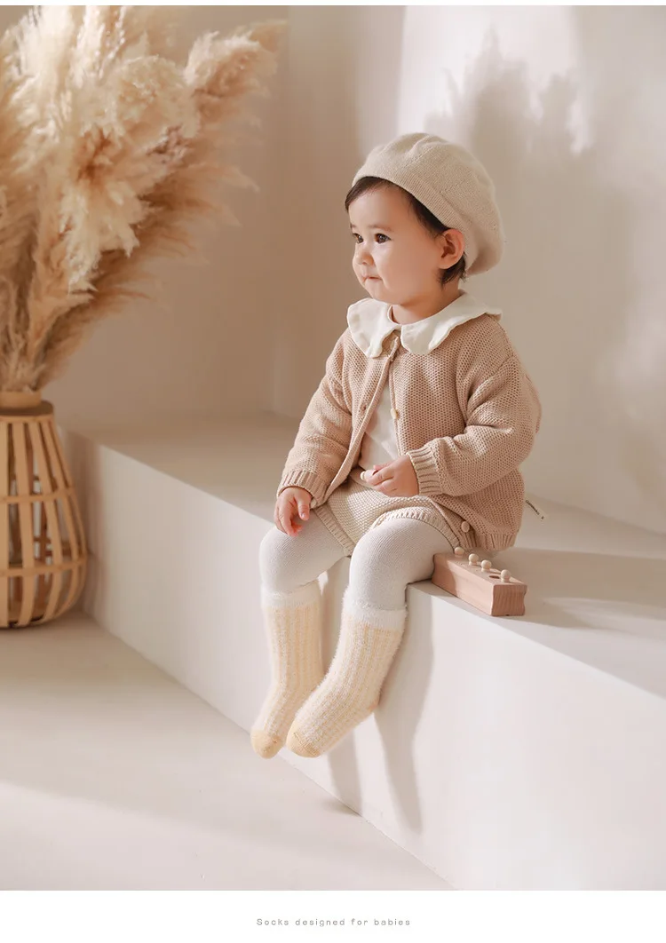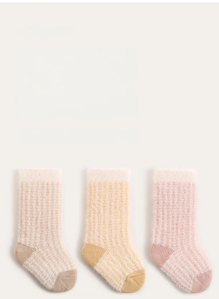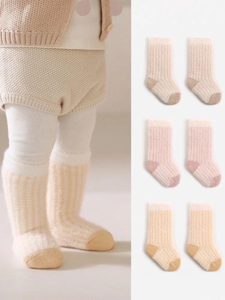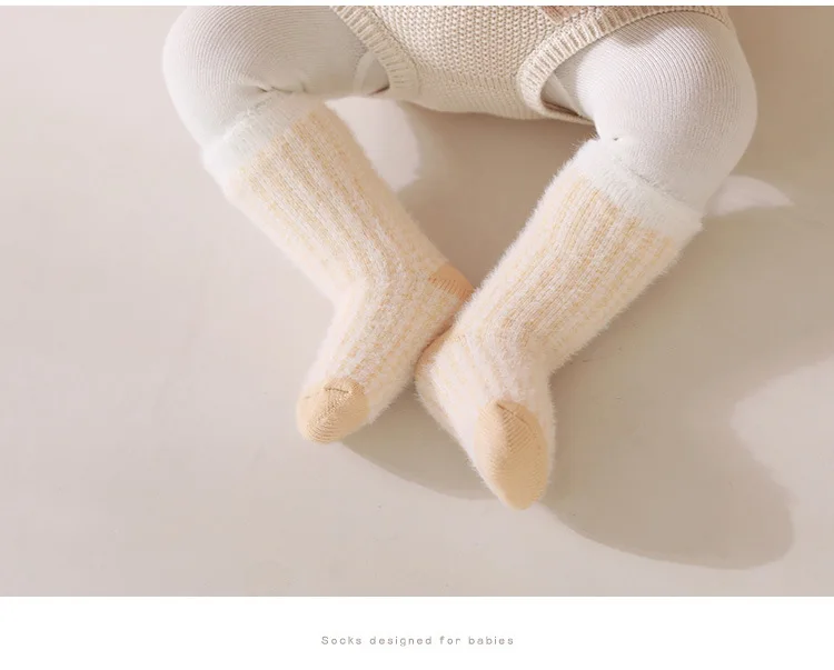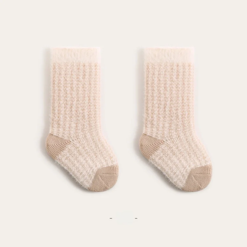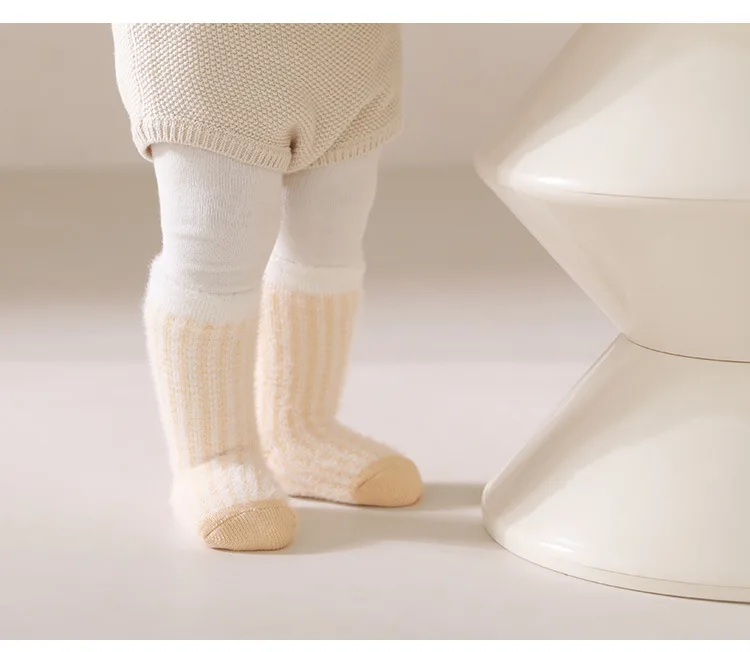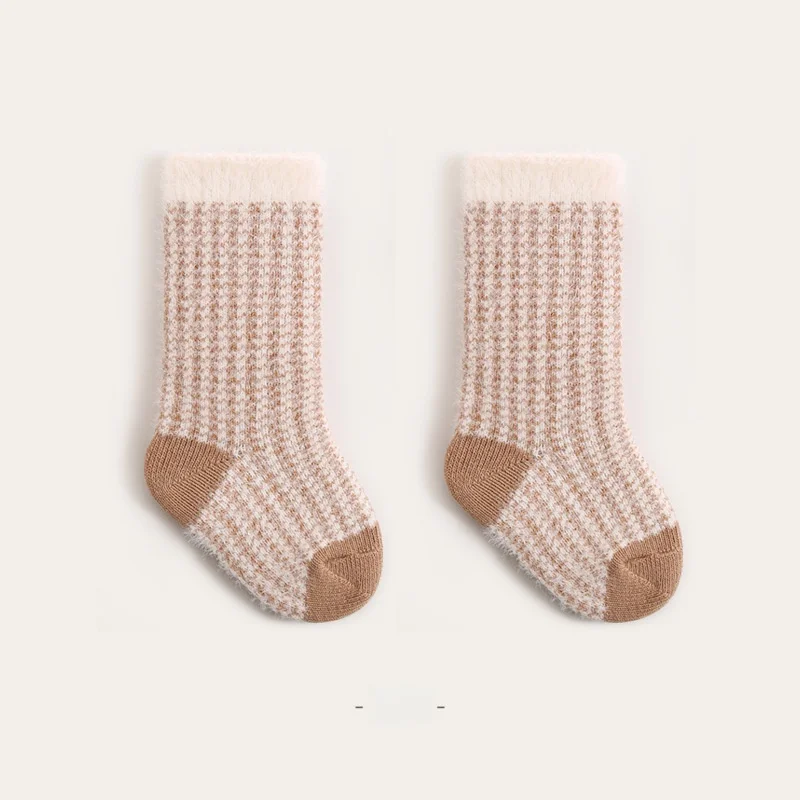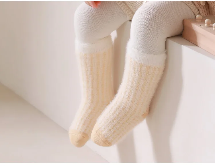 Toddler Girls Infant Socks 0-5Y Boy Baby Socks Thickened Fleece Lined Mid Calf Socks Winter Warm Casual Daily Wear Thermal Socks