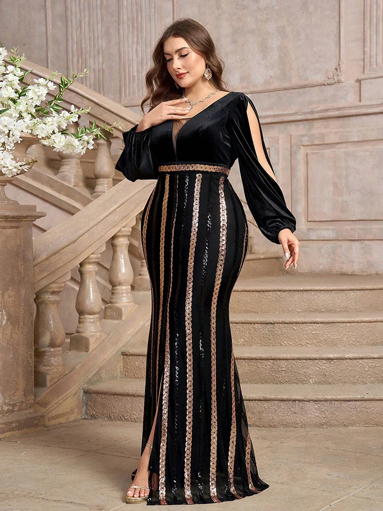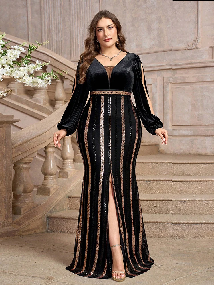 TOLEEN 2024 Luxury Elegant Women Party Maxi Dress Plus Size Formal Evening Gown (Embellished Design) With Random Floral Pattern
