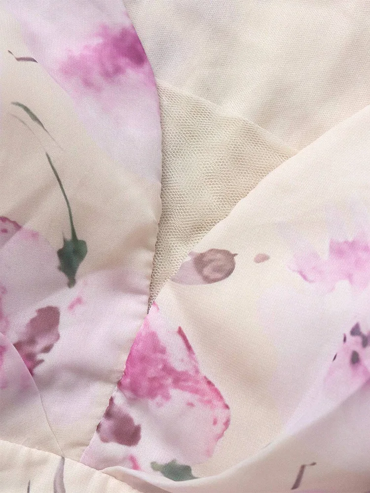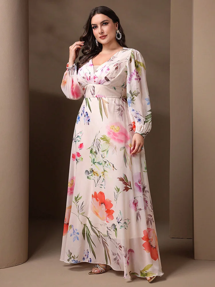 TOLEEN 2024 New Summer Casual Elegant V-Neck Slim Mesh Holiday Dresses Fashion Floral Printed Plus Size Womens Long Sleeve Dress